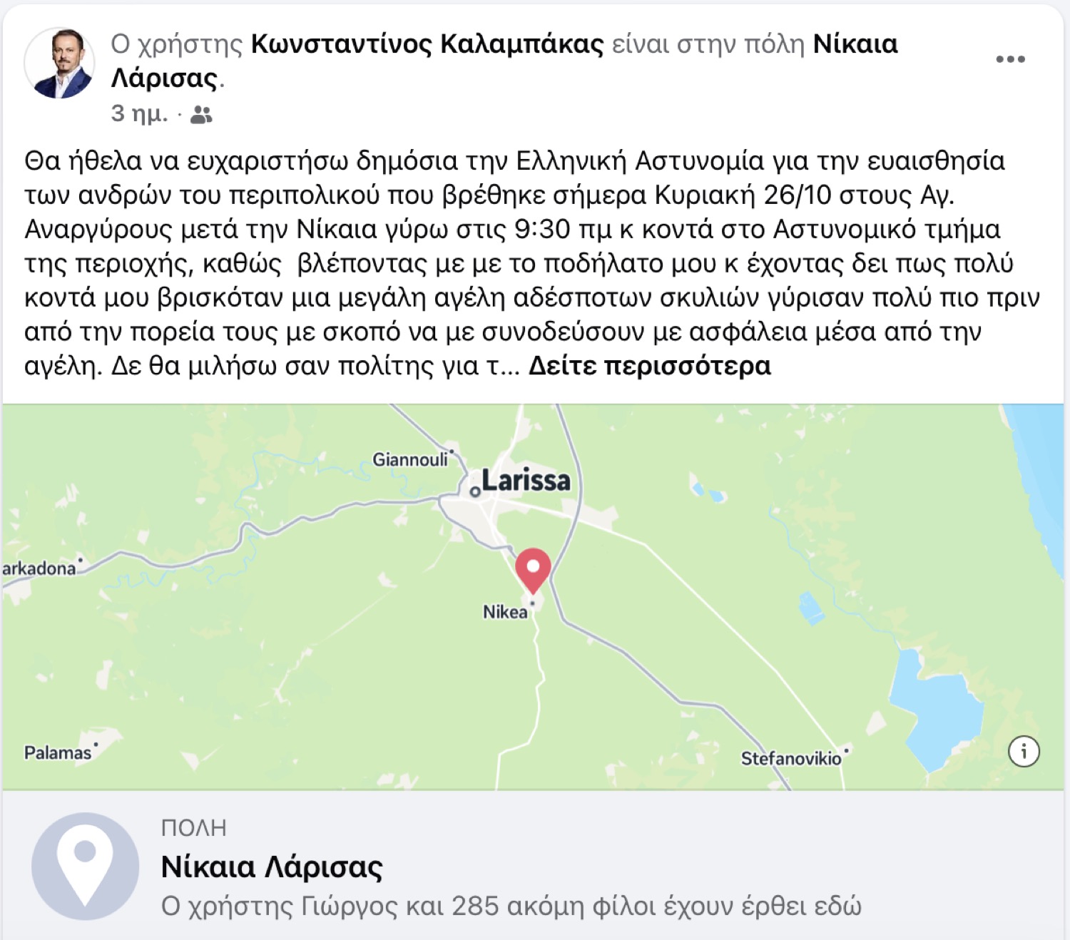 Τραυματική εμπειρία για γνωστό Λαρισαίο: Περικυκλώθηκε από σκυλιά και τον έσωσε η αστυνομία – Η συνοδεία και το «ευχαριστώ»