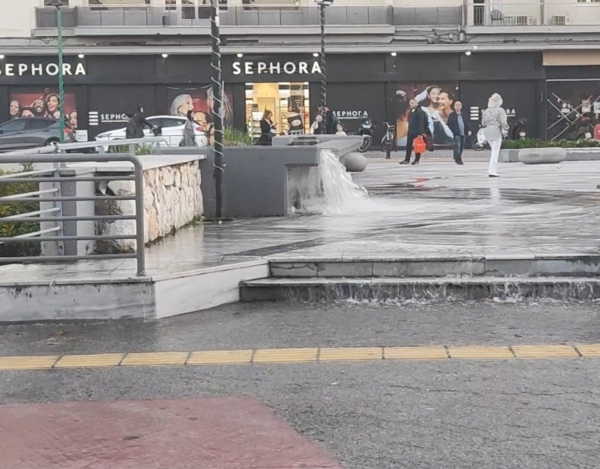 Βλάβη στον καταρράκτη της γέφυρας του Ασκληπιού και… πλημμύρα στην οδό Αμαλίας το απόγευμα της Τετάρτης στα Τρίκαλα.