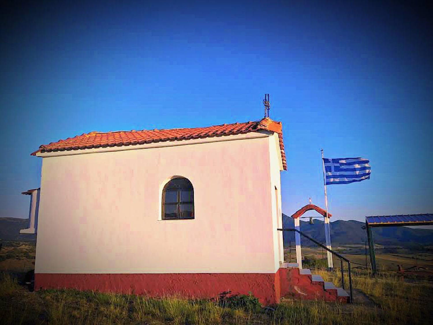 Ανεβαίνοντας λίγο πιο πάνω, στην κορφή του παρακείμενου λόφου, το μικρό ξωκλήσι στέκει σαν φύλακας των αιώνων. Από εκεί, το βλέμμα ανοίγει στον απέραντο ορίζοντα.