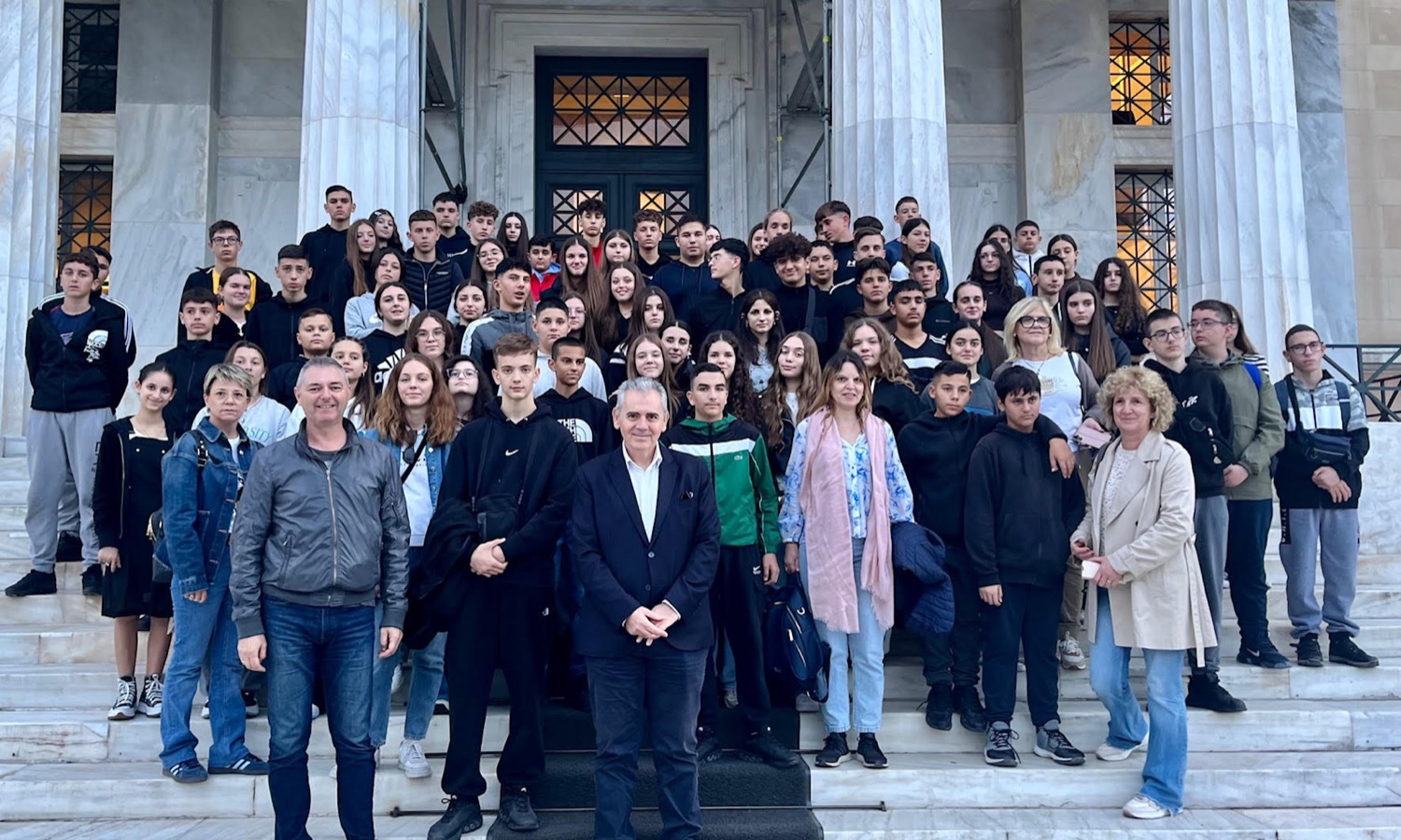 Ο Θεσσαλός πολιτικός καλωσορίζοντας τα παιδιά επισήμανε ότι «είναι χρήσιμες αυτές οι επισκέψεις στη Βουλή. Πολλώ δε μάλλον που είστε μαθητές της Γ΄ Γυμνασίου, οπότε σύντομα θα έχετε το δικαίωμα του εκλέγειν και εκλέγεσθαι. Ως εκ τούτου, είναι πολύ σημαντικό να γνωρίσετε εκ του σύνεγγυς τους θεσμούς του δημοκρατικού πολιτεύματος, όπως είναι το νομοθετικό σώμα, και τον τρόπο λειτουργίας τους. Η δημοκρατία στην πατρίδα μας έχει καταγράψει την πιο μακρά περίοδο ομαλότητας. Ωστόσο, αυτό δεν σημαίνει ότι δεν ελλοχεύουν κίνδυνοι και σοβαρές απειλές. Στις δημοκρατίες στη Δύση παρατηρείται σε αρκετές περιπτώσεις μειωμένο ενδιαφέρον και χαμηλή συμμετοχή στις εκλογικές διαδικασίες. Κάτι που στην αρχαία Αθήνα, κοιτίδα της Δημοκρατίας, θεωρείτο απαράδεκτο. Ο υπεύθυνος πολίτης οφείλει να συμμετέχει ενεργά στα πολιτικά πράγματα του τόπου του. Γι’ αυτό, λοιπόν, και εσείς, όταν έρθει η ώρα, πρέπει να γίνετε ενεργοί πολίτες, γιατί τίποτα δεν μπορεί να αλλάξει εάν αδιαφορούμε για τα κοινά».