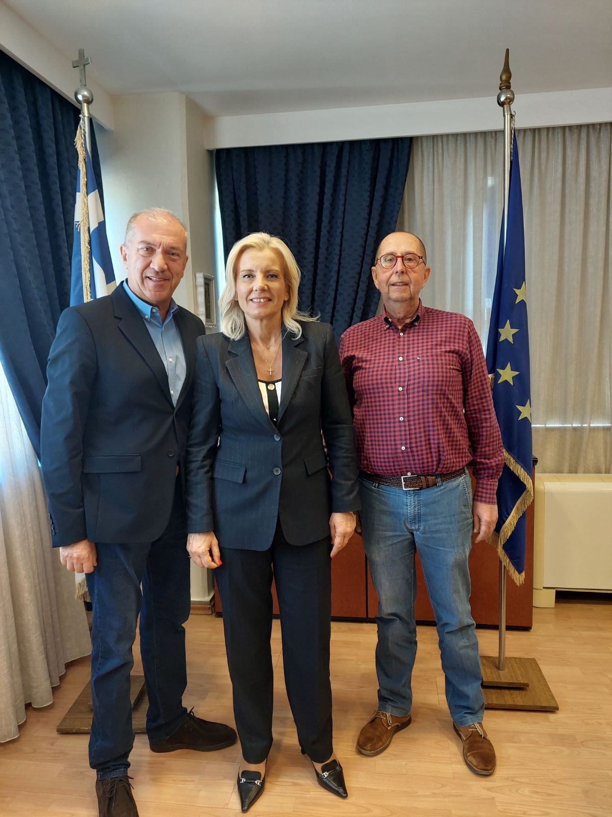 Με τον Πρόεδρο και τον Αντιπρόεδρο του Ελληνικού Ορειβατικού Συλλόγου Λάρισας κ.κ. Χρήστο Καραμπούζη και Γρηγόρη Παπαχαραλάμπους συναντήθηκε στο γραφείο της η Γενική Γραμματέας της Αποκεντρωμένης Διοίκησης Θεσσαλίας-Στερεάς Ελλάδας, κα Ρένα Καραλαριώτου.