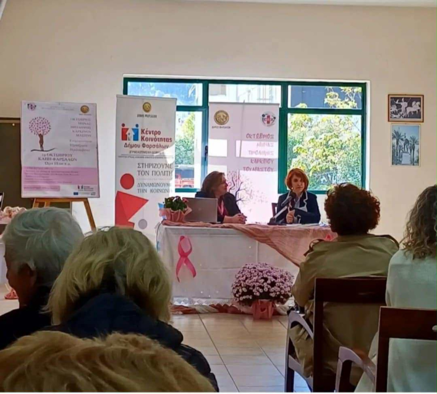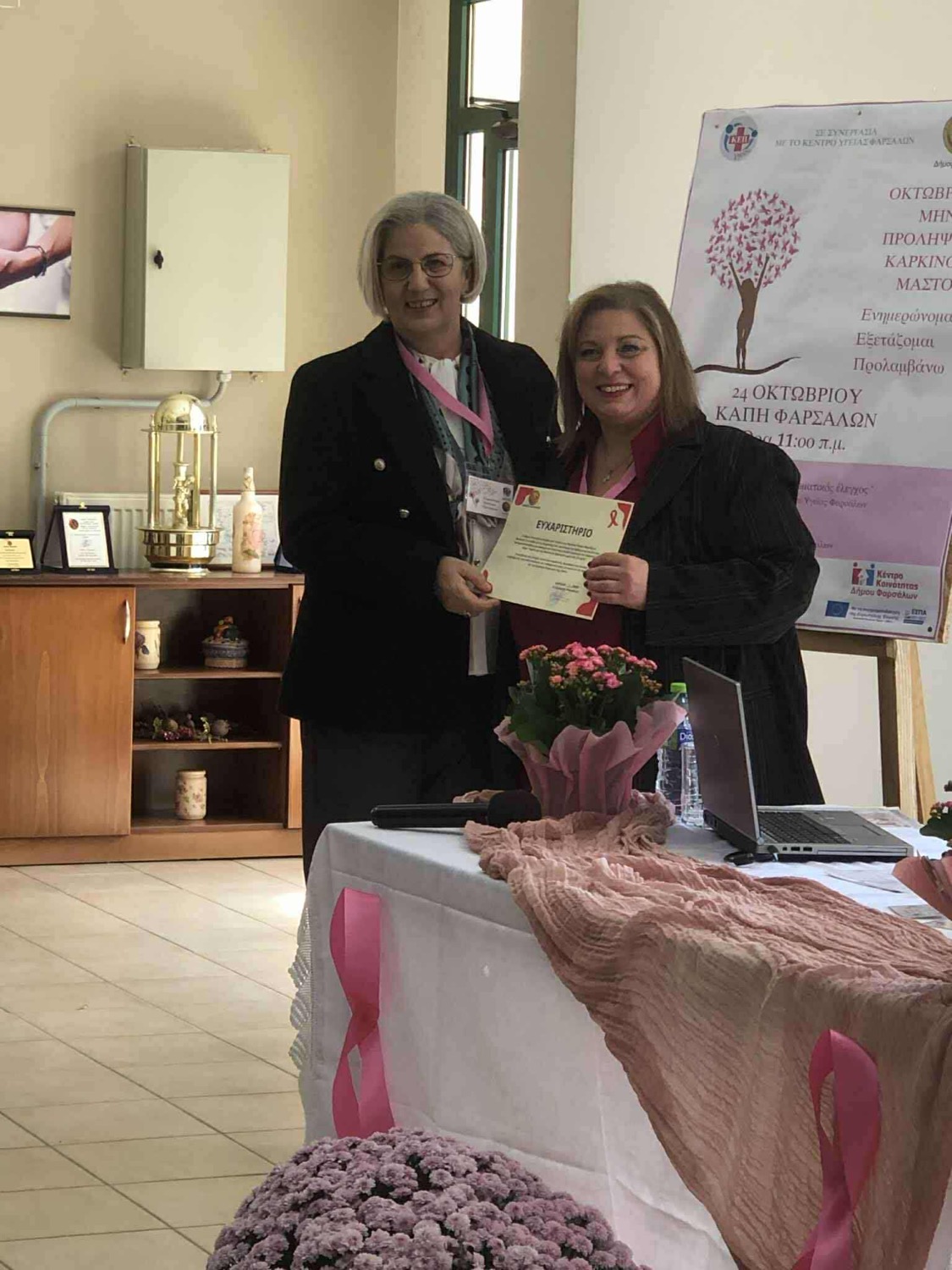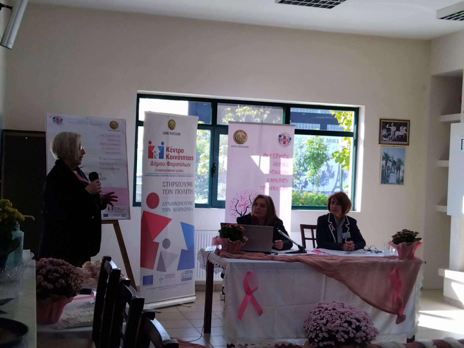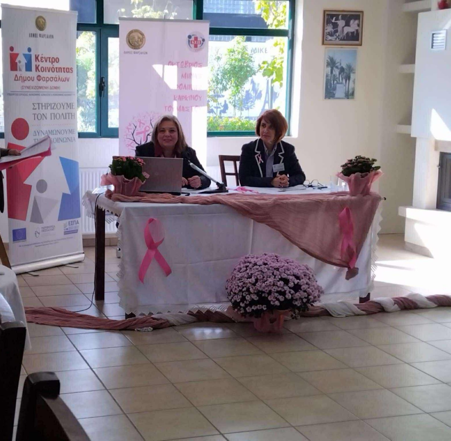 Με μεγάλη επιτυχία πραγματοποιήθηκε η ενημερωτική ομιλία «Καρκίνος του μαστού – Προσυμπτωματικός έλεγχος» και «Εμβολιασμός Ενηλίκων» που διοργάνωσε το ΚΕΠ Υγείας και το Κέντρο Κοινότητας του Δήμου Φαρσάλων σε συνεργασία με το Κέντρο Υγείας Φαρσάλων.
