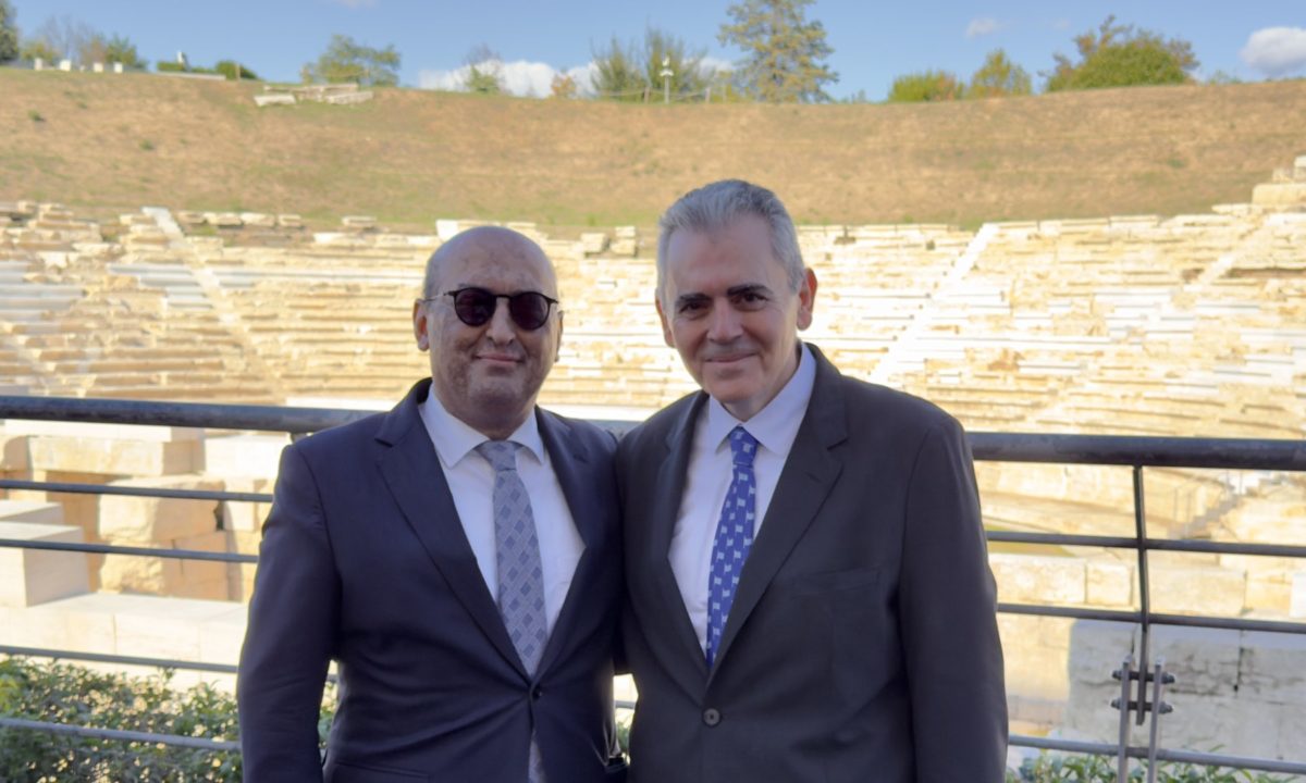 Η αναμνηστική φωτογραφία των δύο τους τραβήχτηκε στο αρχαίο θέατρο Λάρισας, που εντυπωσίασε τον Αρμένιο διπλωμάτη.