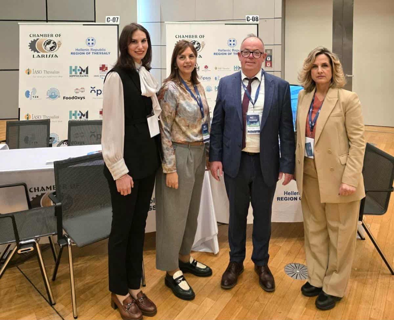 (από αριστ.) Γεωργία Στάθη, Γραμματέας Διοίκησης ΙΑΣΩ Θεσσαλίας, Ιωάννα Σάββα Υπεύθυνη Επικοινωνίας, Marketing και Δημοσίων Σχέσεων ΙΑΣΩ Θεσσαλίας, Χρήστος Γιακουβής, Πρόεδρος Επιμελητηρίου Λάρισας και Μαρίνη Ορφανού, Διευθύντρια Λειτουργιών ΙΑΣΩ Θεσσαλίας