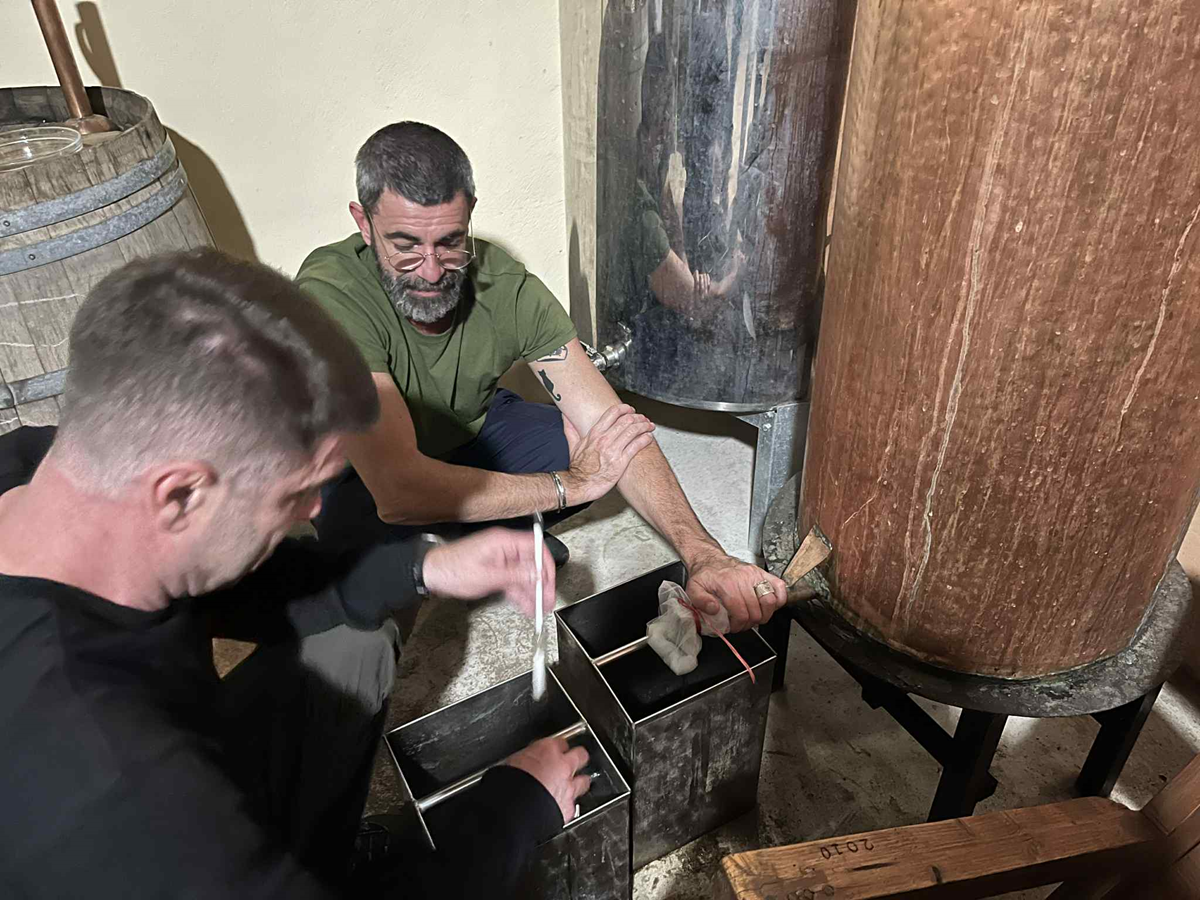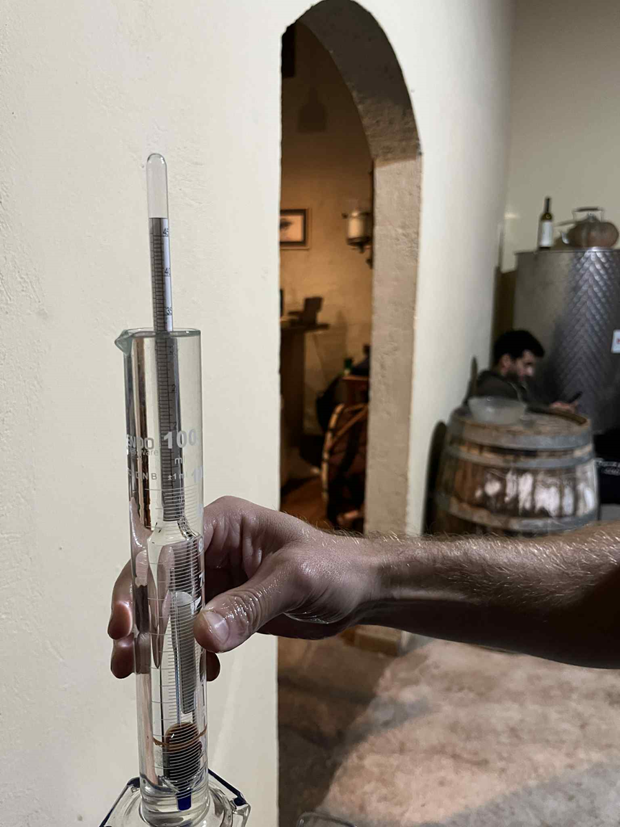 Τώρα περιμένουν πάλι. Το αφήνουν να καθίσει για δέκα μέρες περίπου για να το «σπάσουν» με νερό ώστε να κατεβάσουν τους βαθμούς στο επιθυμητό επίπεδο, τους 22 βαθμούς. Πάλι με ένα θερμόμετρο στο χέρι θα είναι…