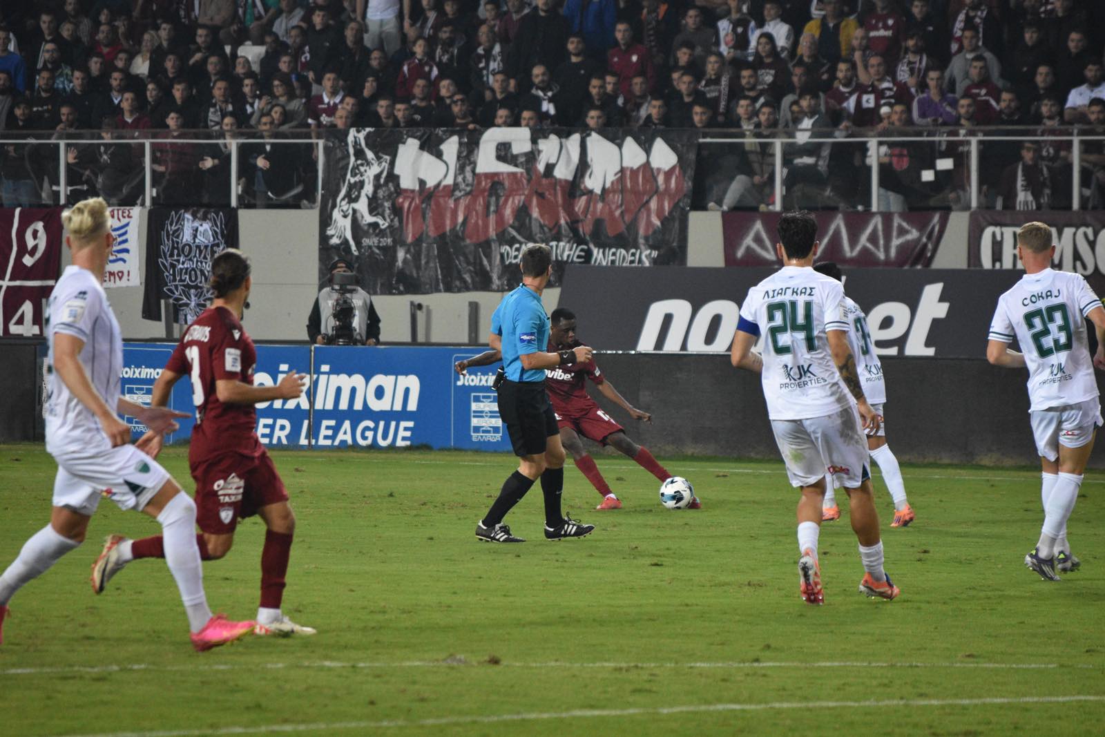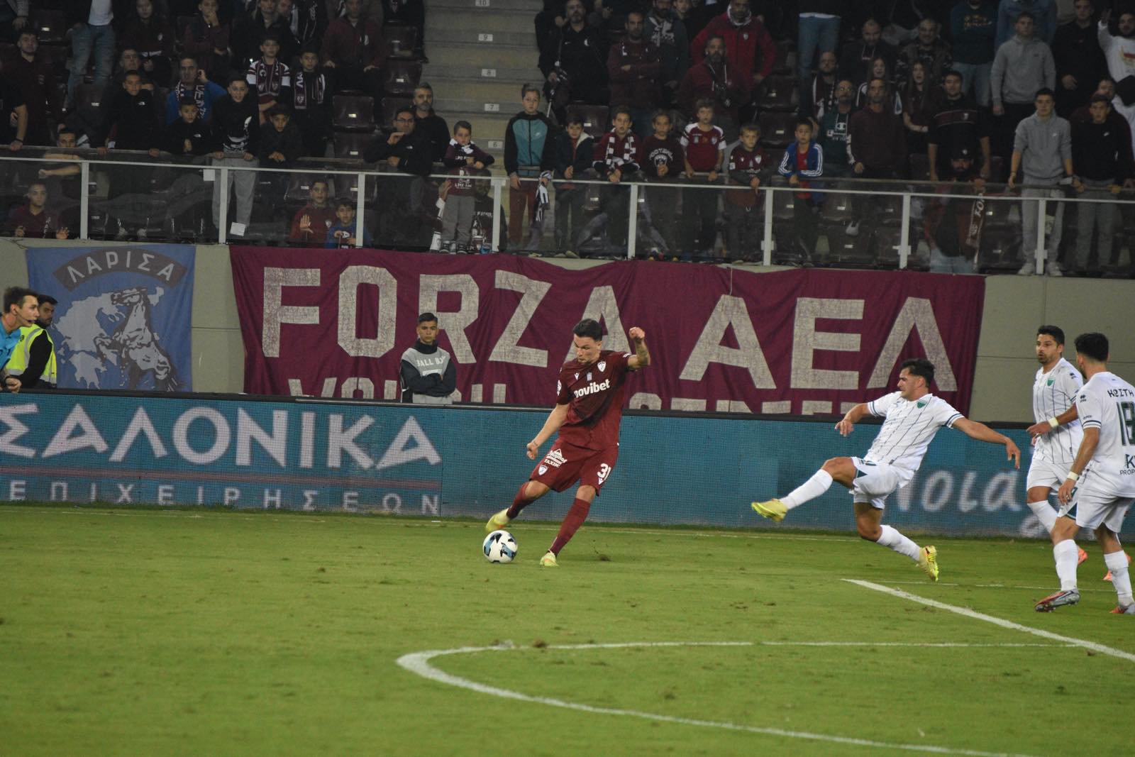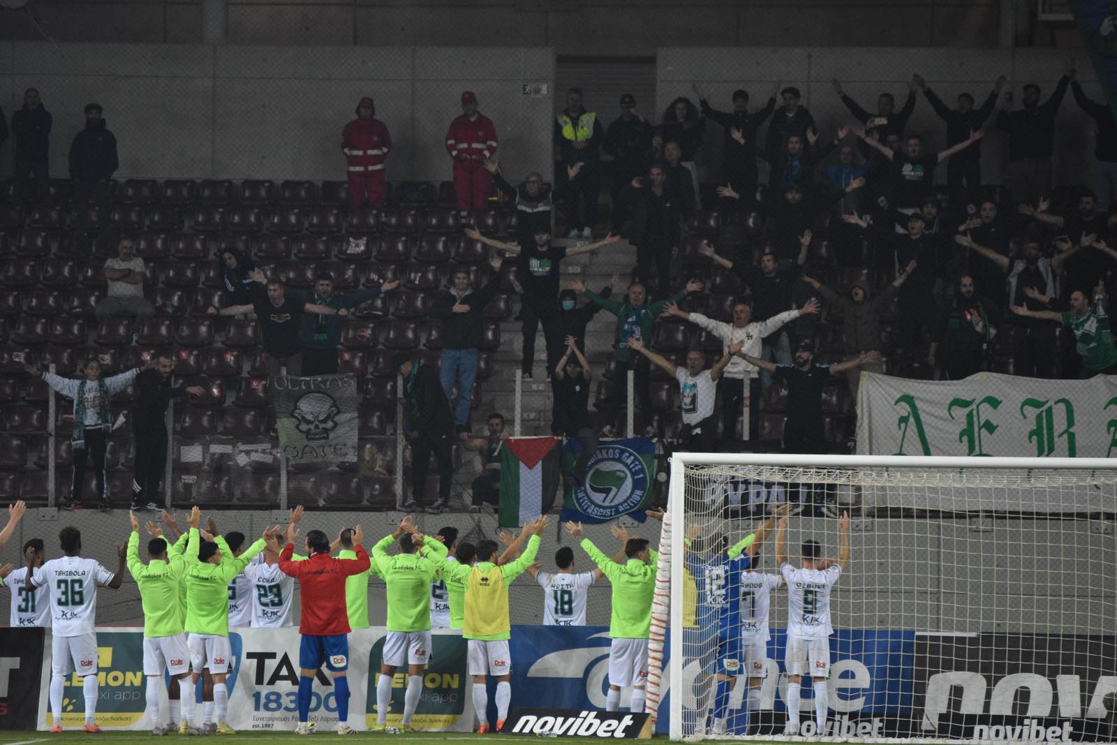 Στο 57ο λεπτό, φίλοι της ΑΕΛ και του Λεβαδειακού ένωσαν τις φωνές τους φωνάζοντας κοινό σύνθημα για τα Τέμπη, σε μια συγκινητική στιγμή που επισκίασε για λίγο τον αγωνιστικό ρυθμό του παιχνιδιού.
