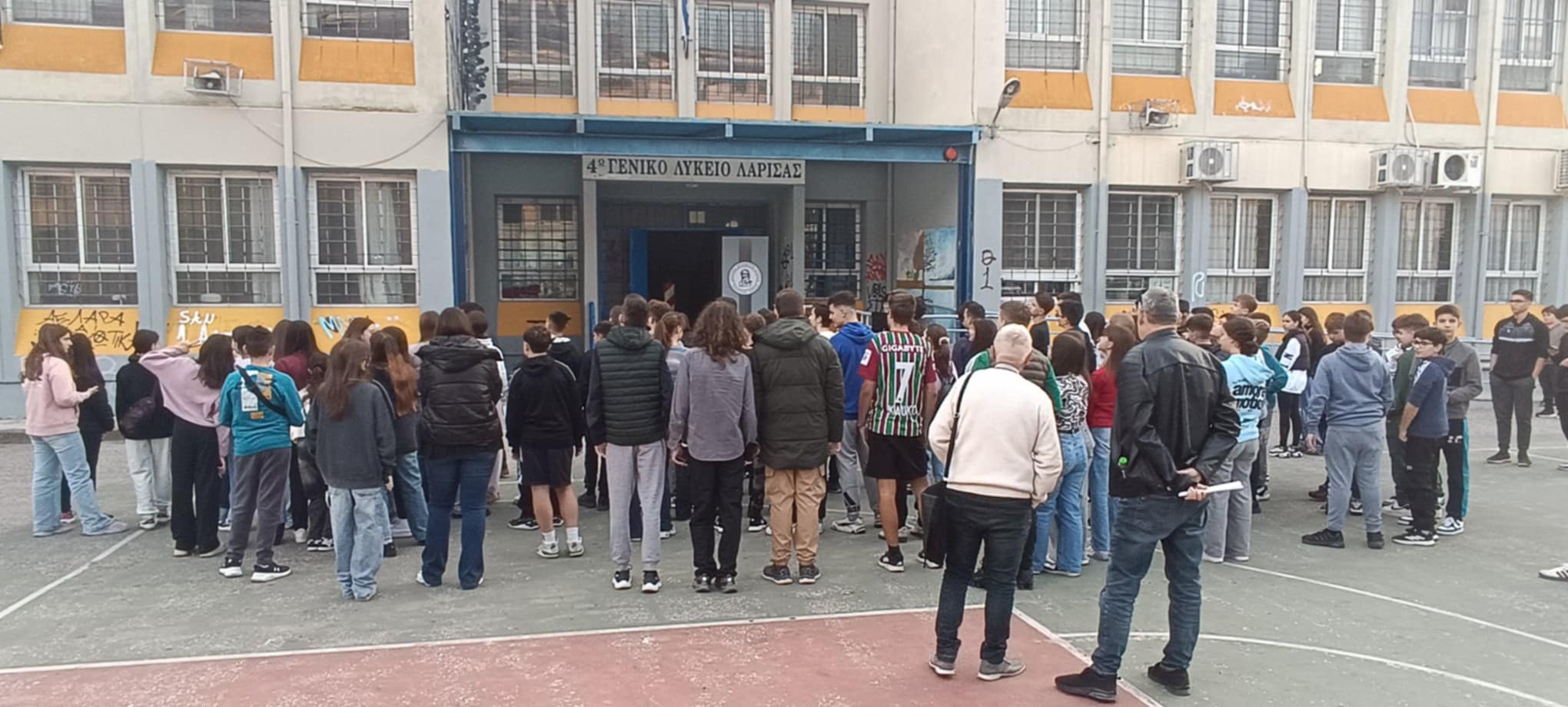 Παράλληλα, ευχαριστεί θερμά τον Διευθυντή του 4ου ΓΕΛ Λάρισας, κ. Πέτρο Δημοβέλη, για τη φιλοξενία και τη συνεχή στήριξή του στη διοργάνωση των μαθημάτων καθώς και το Βιβλιοπωλείο Καλτσάς για την ευγενική του χορηγία στην εκτύπωση του διδακτικού υλικού.