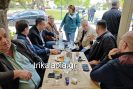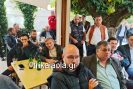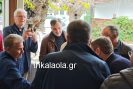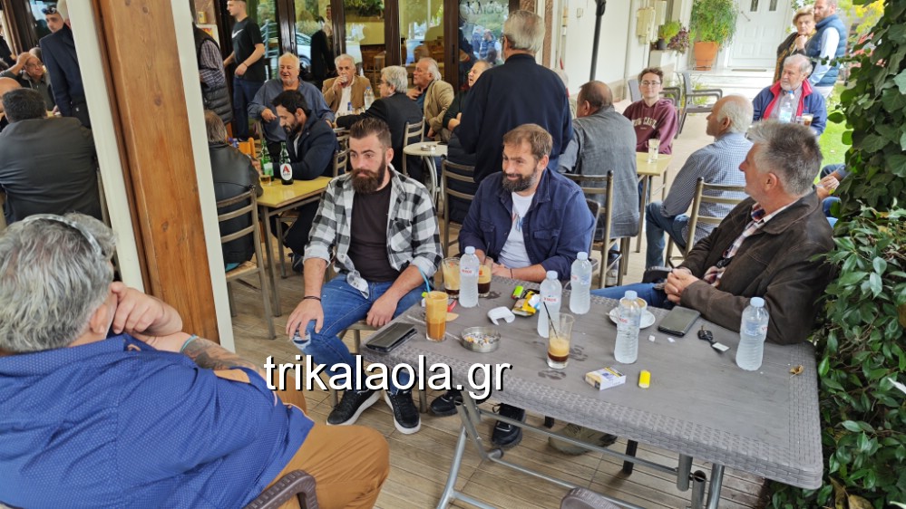 Ο κόσμος ήταν συγκεντρωμένος σε καφενείο της κεντρικής πλατείας των Μεγάλων Καλυβίων, όπου έγινε και η ομιλία προς τους αγρότες και τους κτηνοτρόφους.