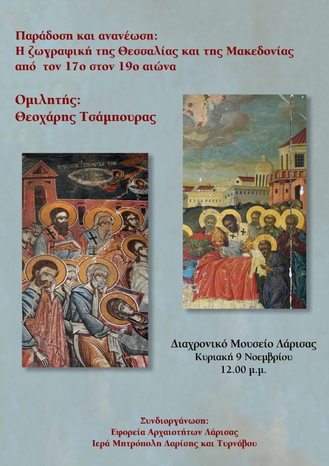 Διάλεξη με τίτλο «Παράδοση και Ανανέωση – Η ζωγραφική της Θεσσαλίας και Μακεδονίας από τον 17ο στον 19ο αιώνα» στη Λάρισα