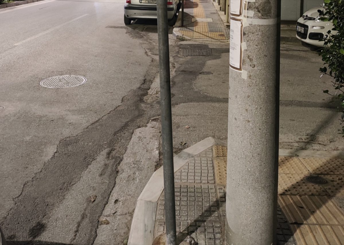 Οι πολίτες ζητούν να επιληφθεί άμεσα η Τεχνική Υπηρεσία του Δήμου ή η Διεύθυνση Τεχνικών Έργων, ώστε να στερεωθεί ο στύλος σωστά και να αποφευχθεί πιθανός τραυματισμός.