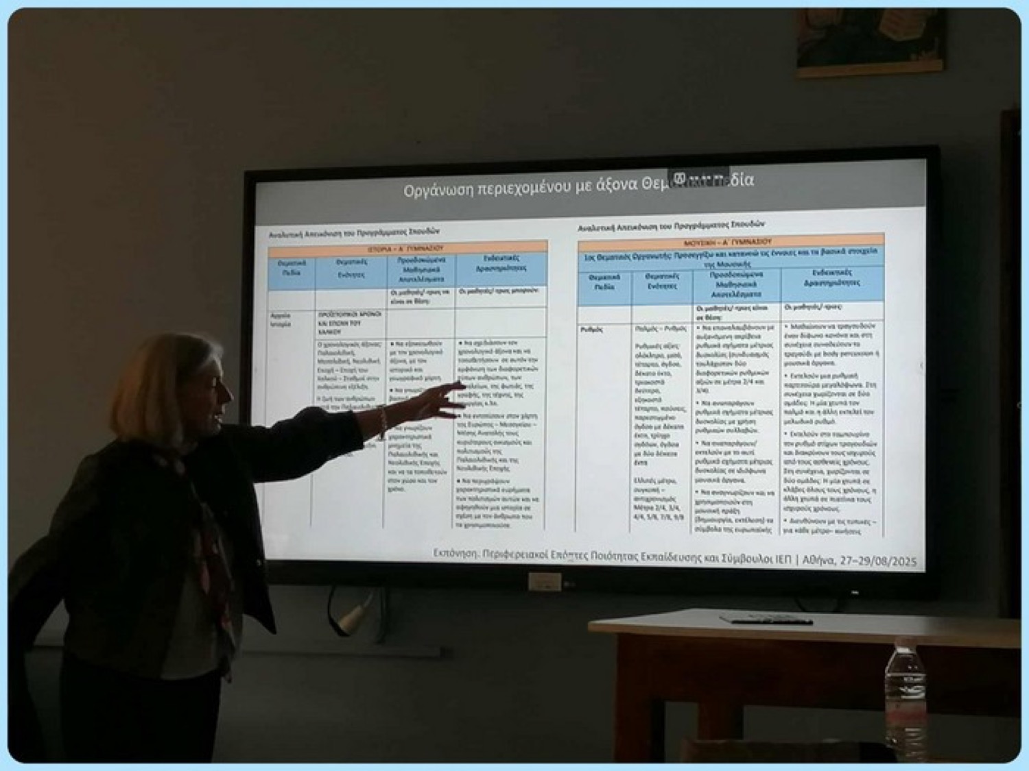 Η Σύμβουλος Εκπαίδευσης Παιδαγωγικής Ευθύνης ανέλυσε το θέμα της επιμορφωτικής συνάντησης με στόχο την προετοιμασία των εκπαιδευτικών στην εφαρμογή των Προγραμμάτων Σπουδών και στην ενημέρωσή τους για το Πολλαπλό Βιβλίο. Απάντησε σε απορίες των εκπαιδευτικών και διαβεβαίωσε για τη διάθεσή της για κάθε επιπρόσθετη υποστήριξη, συνεργασία ή διευκρίνηση.