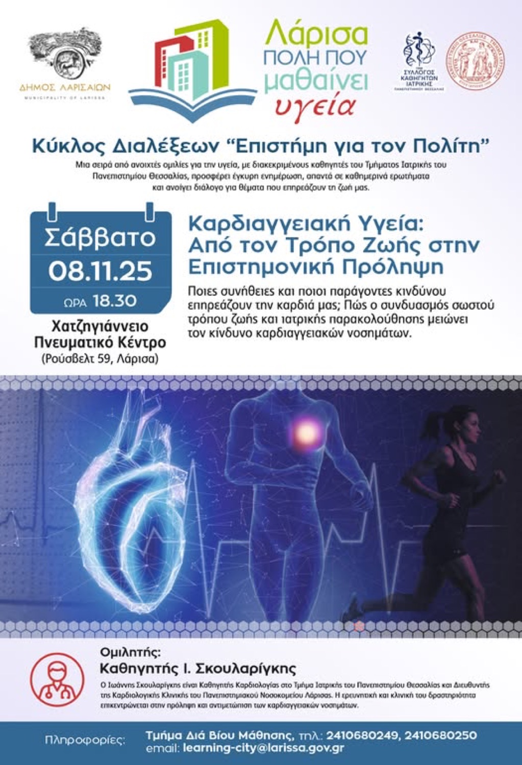 Διάλεξη με θέμα «Καρδιαγγειακή Υγεία: Από τον Τρόπο Ζωής στην Επιστημονική Πρόληψη» το Σάββατο στη Λάρισα