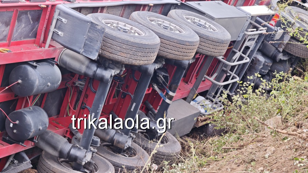 Τρίκαλα: Τρομακτικό τροχαίο με νταλίκα να περνά στο αντίθετο ρεύμα και να ανατρέπεται (βίντεο – φωτό)