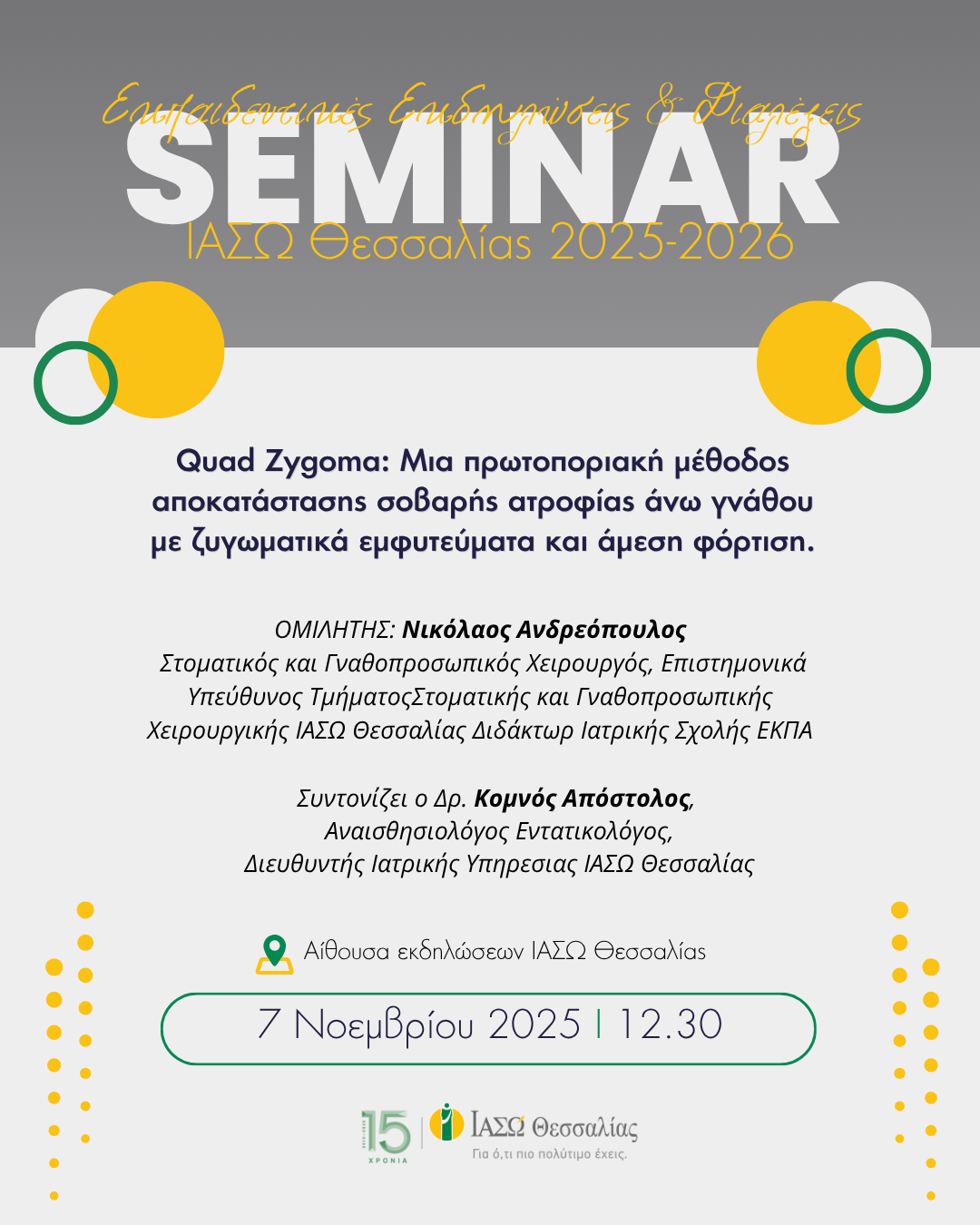 Επιστημονική Διάλεξη στο ΙΑΣΩ Θεσσαλίας – Quad Zygoma: Μια πρωτοποριακή μέθοδος