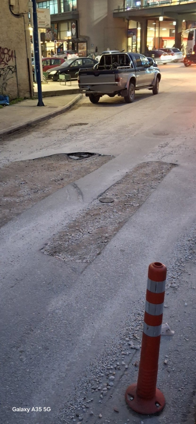 Η παγίδα στο οδόστρωμα βρίσκεται στην περιοχή των Υπεραστικών ΚΤΕΛ Λάρισας και σε στενό που οδηγεί στο πάρκινγκ έναντι του κτιρίου.