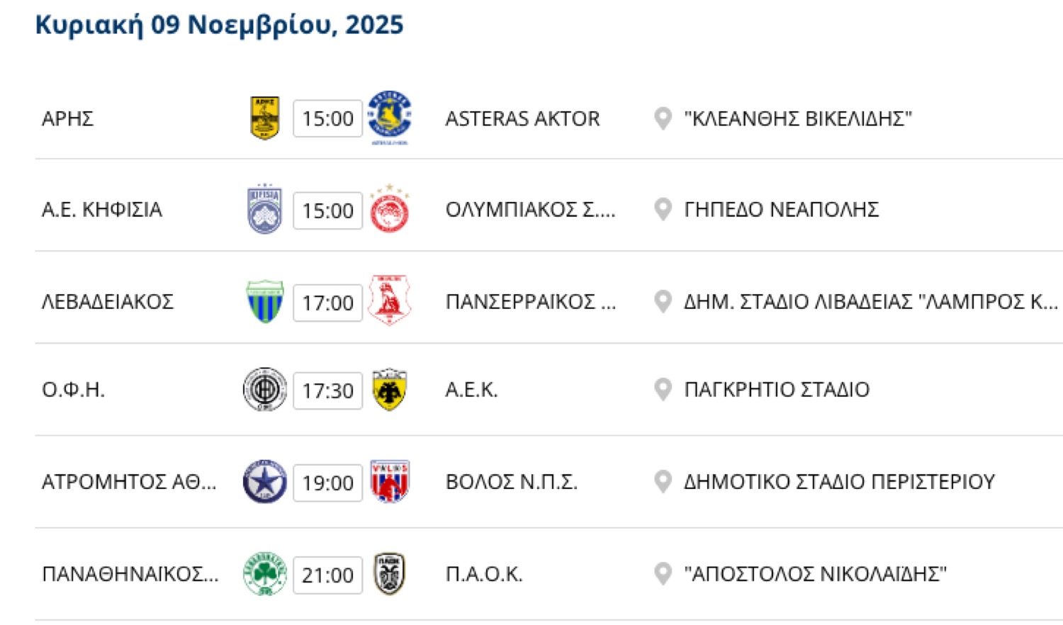Το υπόλοιπο πρόγραμμα της 10ης αγωνιστικής: