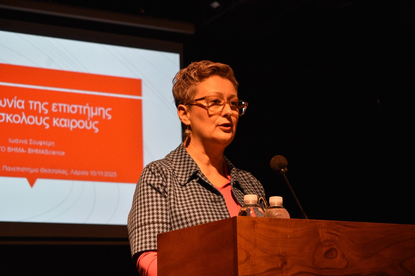 Επίτιμη καλεσμένη ήταν κ. Ιωάννα Σουφλέρη, Αρχισυντάκτρια του ΒΗΜΑScience, η οποία έδωσε διάλεξη με θέμα «Η Επικοινωνία της Επιστήμης σε δύσκολους καιρούς» και πριν την έναρξη της εκδήλωσης στις δηλώσεις της επισήμανε πως: «συζητάμε σήμερα για το γιατί είναι σημαντικό να επικοινωνούμε την επιστήμη και χαίρομαι που είναι εδώ πολλά νέα παιδιά. Ζούμε σε πραγματικά δύσκολους καιρούς όπου βλέπουμε την επιστήμη να καπελώνεται από την ψευδοεπιστήμη.