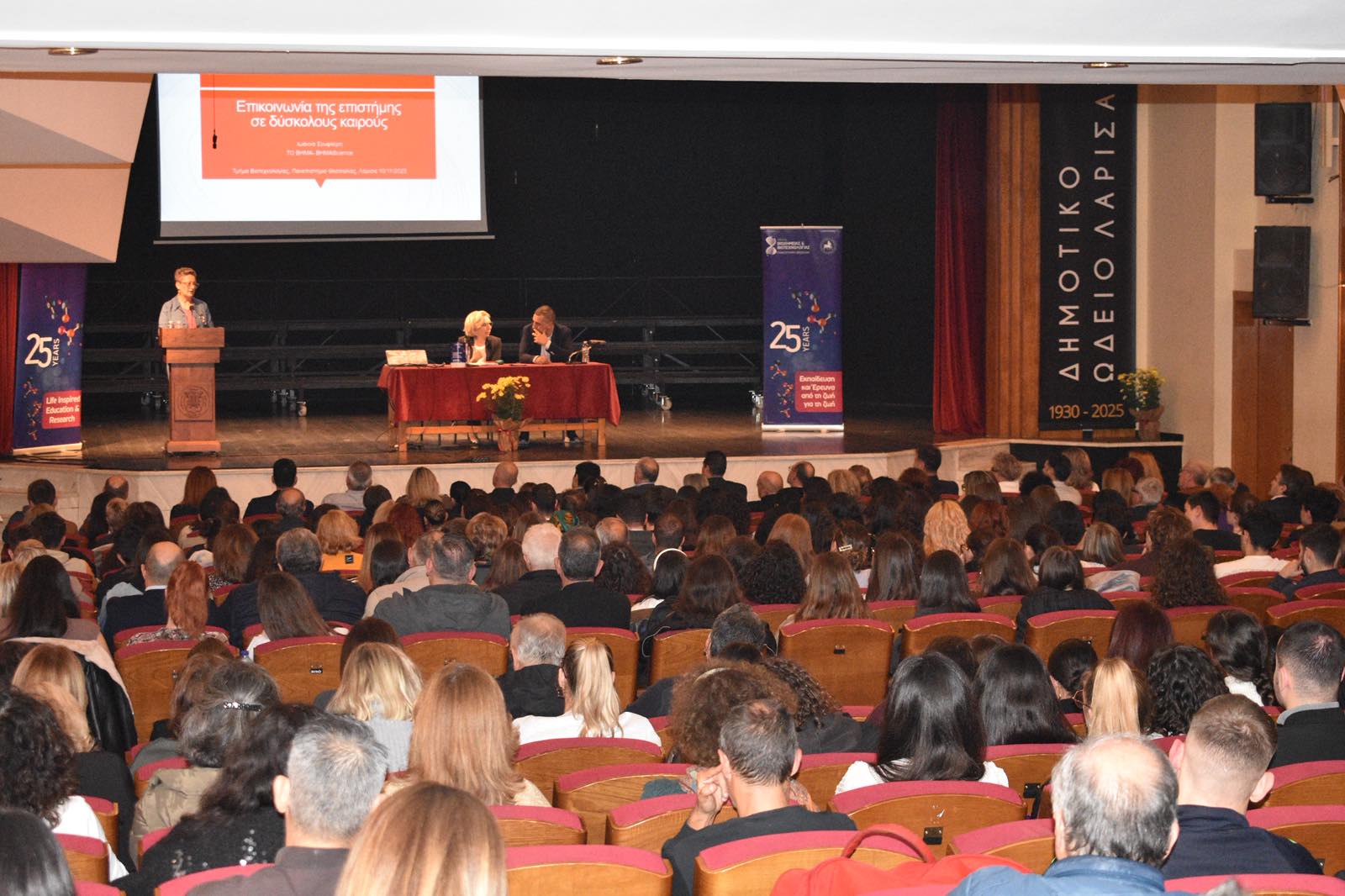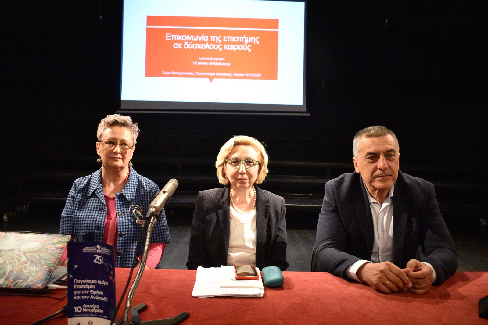 Μια πολύ ενδιαφέρουσα ανοιχτή συζήτηση και ανταλλαγή απόψεων έλαβε χώρα σήμερα το απόγευμα της Δευτέρας στο Δημοτικό Ωδείο Λάρισας με αφορμή την Παγκόσμια ημέρα Επιστήμης για την ειρήνη και την ανάπτυξη.