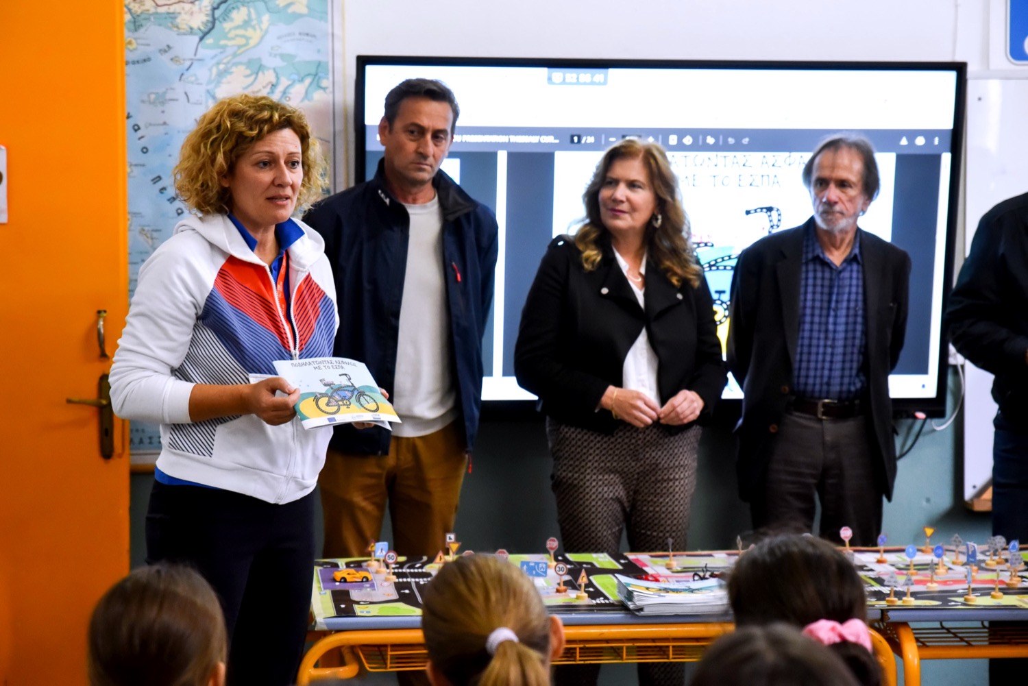 Μπαίνοντας στην αίθουσα, ο κ. Κουρέτας κάθισε ανάμεσα στους μικρούς μαθητές, μίλησε μαζί τους για το ποδήλατο, άκουσε τις εμπειρίες και τους προβληματισμούς τους, και τους μύησε στην έννοια της ποδηλατικής κουλτούρας και της ασφαλούς κυκλοφορίας.