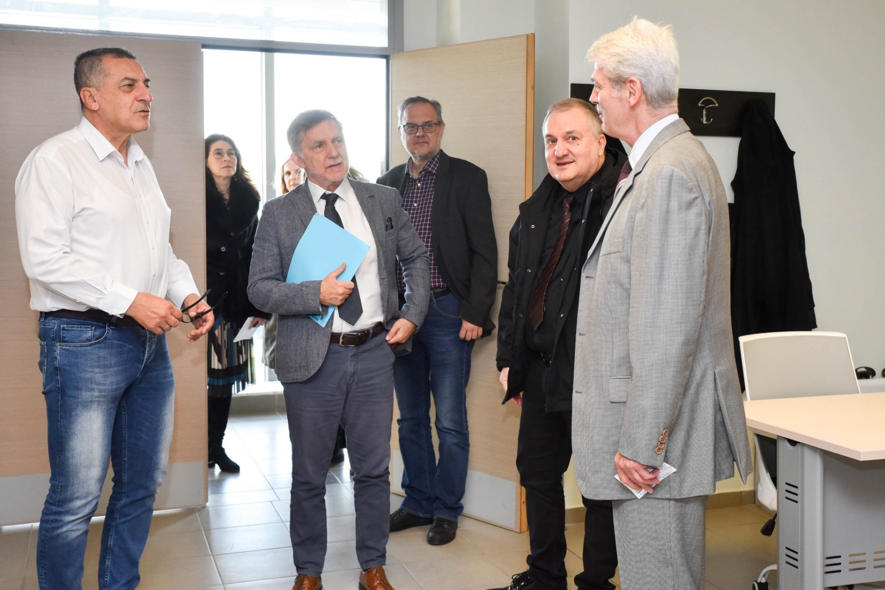 Ακολούθως, ο Κοινοτικός παράγοντας ξεναγήθηκε στο Κέντρο Πολιτικής Προστασίας της Περιφέρειας Θεσσαλίας, από τον Περιφερειακό Συντονιστή του Κέντρου Πολιτικής Προστασίας Περιφέρειας Θεσσαλίας Δημήτρη Μπίκο, την προϊσταμένη της Αυτοτελούς Διεύθυνσης Πολιτικής Προστασίας Ελεάννα Πορίχη και τον προϊστάμενο του Τμήματος Σχεδιασμού μέτρων πρόληψης και Σχεδίων αντιμετώπισης καταστροφών Γιάννη Χλόπσιο, τονίζοντας τον πολύ σημαντικό ρόλο που παίζει το Κέντρο στην διαχείριση εκτάκτων καταστάσεων.