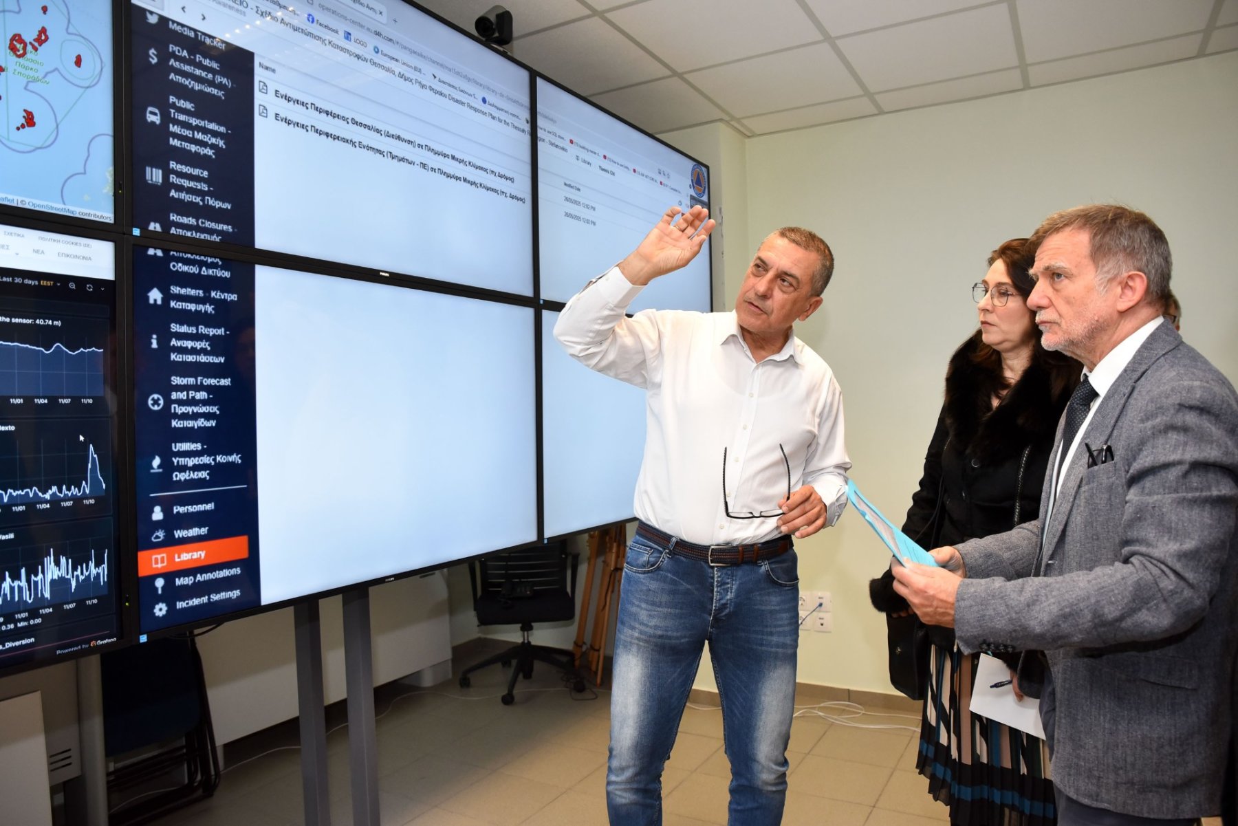 Ακολούθως, ο Κοινοτικός παράγοντας ξεναγήθηκε στο Κέντρο Πολιτικής Προστασίας της Περιφέρειας Θεσσαλίας, από τον Περιφερειακό Συντονιστή του Κέντρου Πολιτικής Προστασίας Περιφέρειας Θεσσαλίας Δημήτρη Μπίκο, την προϊσταμένη της Αυτοτελούς Διεύθυνσης Πολιτικής Προστασίας Ελεάννα Πορίχη και τον προϊστάμενο του Τμήματος Σχεδιασμού μέτρων πρόληψης και Σχεδίων αντιμετώπισης καταστροφών Γιάννη Χλόπσιο, τονίζοντας τον πολύ σημαντικό ρόλο που παίζει το Κέντρο στην διαχείριση εκτάκτων καταστάσεων.