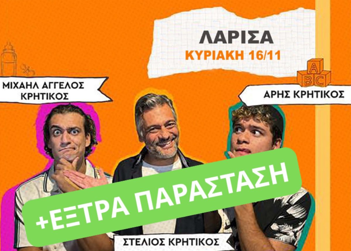 Ανάρπαστα έγιναν τα εισιτήρια για το έργο οι “Οικογενειακές Ιστορίες των Κρητικών” στη Λάρισα, με αποτέλεσμα να προγραμματιστεί δεύτερη διαδοχική παράσταση από το Victoria Cinemas.