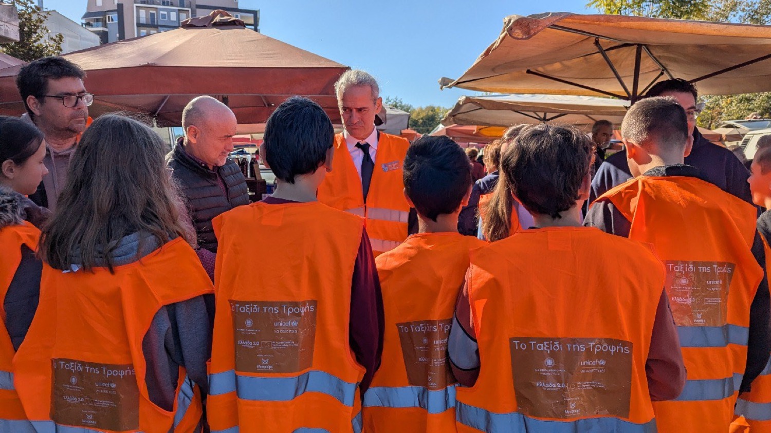 Μαθητές του 1ου Πειραματικού Γυμνασίου Λάρισας ενίσχυσαν το Κοινωνικό Παντοπωλείο συλλέγοντας τρόφιμα από τη λαϊκή (φώτο)