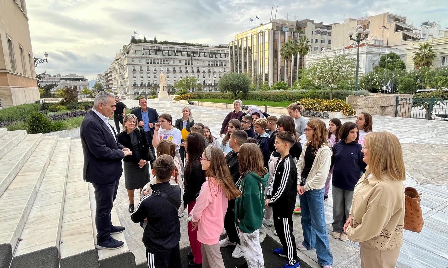 Στην αξία της εξοικείωσης των παιδιών με τη λειτουργία του δημοκρατικού πολιτεύματος, αλλά και στους κινδύνους που ελλοχεύει για τους ανήλικους η ανεξέλεγκτη χρήση των μέσων κοινωνικής δικτύωσης, αναφέρθηκε ο Γραμματέας της Κοινοβουλευτικής Ομάδας της Νέας Δημοκρατίας, βουλευτής Λαρίσης, κ. Μάξιμος Χαρακόπουλος, καλωσορίζοντας στη Βουλή 26 μαθήτριες και μαθητές του Δημοτικού Σχολείου Φαλάνης μαζί με τις συνοδούς δασκάλες τους.