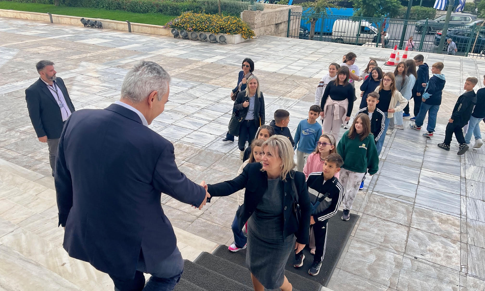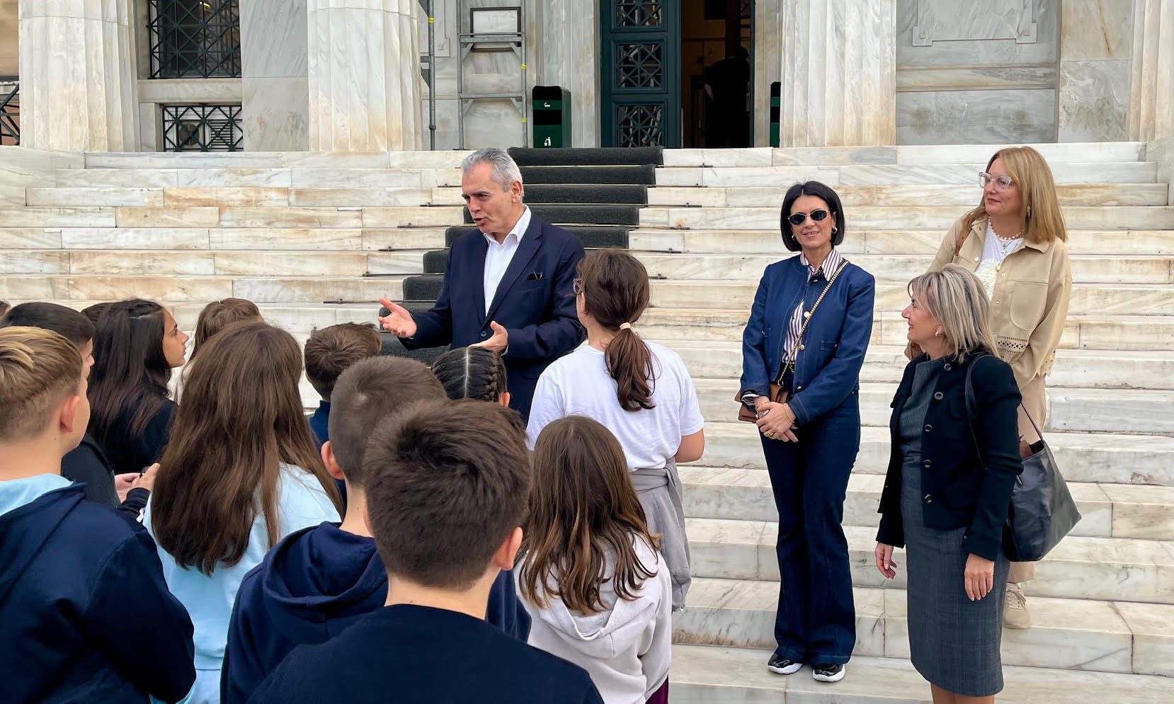 Στην αξία της εξοικείωσης των παιδιών με τη λειτουργία του δημοκρατικού πολιτεύματος, αλλά και στους κινδύνους που ελλοχεύει για τους ανήλικους η ανεξέλεγκτη χρήση των μέσων κοινωνικής δικτύωσης, αναφέρθηκε ο Γραμματέας της Κοινοβουλευτικής Ομάδας της Νέας Δημοκρατίας, βουλευτής Λαρίσης, κ. Μάξιμος Χαρακόπουλος, καλωσορίζοντας στη Βουλή 26 μαθήτριες και μαθητές του Δημοτικού Σχολείου Φαλάνης μαζί με τις συνοδούς δασκάλες τους.