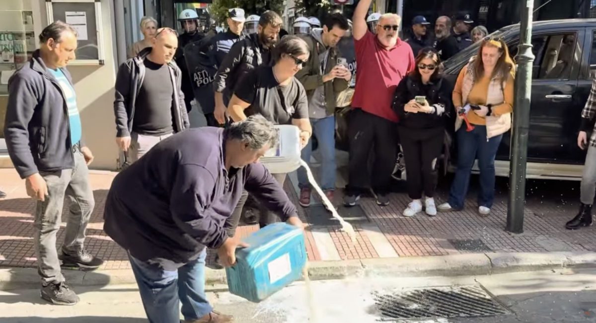 Γάλα στο κέντρο της Λάρισας έχυσαν μαινόμενοι κτηνοτρόφοι χαρακτηρίζοντας «ανεπιθύμητους στη Θεσσαλία» τα κυβερνητικά στελέχη (φωτό – βίντεο)