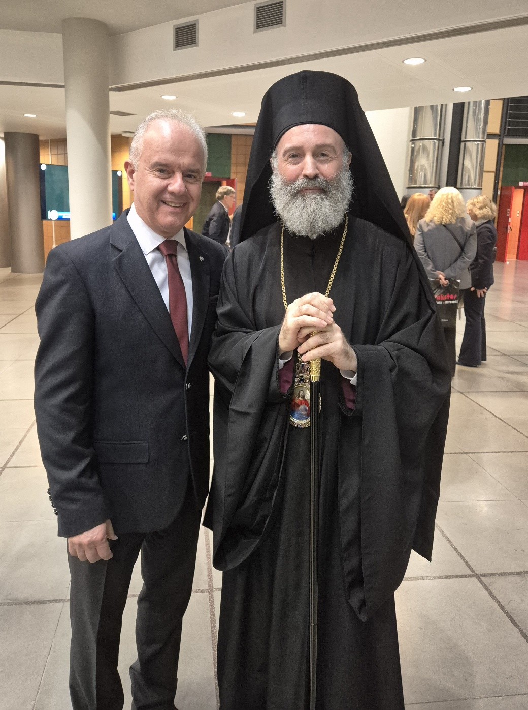 Στο περιθώριο της εκδήλωσης, ο Δήμαρχος Τεμπών είχε επίσης την ευκαιρία να συνομιλήσει με τον Σεβασμιώτατο Αρχιεπίσκοπο Αυστραλίας και Ωκεανίας κ.κ. Μακάριο, με τον οποίο αντάλλαξαν απόψεις για θέματα που αφορούν την ελληνική ομογένεια στην Αυστραλία, καθώς πολλοί δημότες του Δήμου Τεμπών ζουν και δραστηριοποιούνται στη μακρινή αυτή ήπειρο, διατηρώντας άρρηκτους δεσμούς με την πατρίδα.