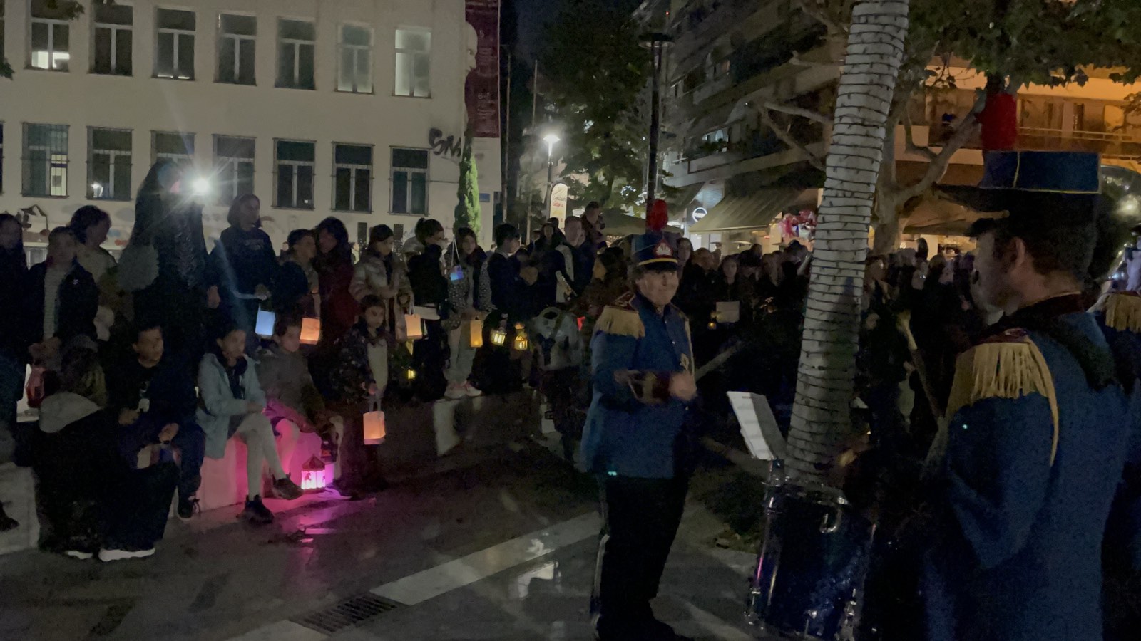 Πλήθος μικρών και μεγάλων συγκεντρώθηκε στην Πλατεία Ταχυδρομείου, όπου τα παιδιά δήλωσαν συμμετοχή στον διαγωνισμό αυτοσχέδιου φαναριού, παρουσιάζοντας μοναδικές χειροποίητες δημιουργίες – από ανακυκλώσιμα υλικά μέχρι περίτεχνα φωτισμένα σχέδια που έδειχναν φαντασία και μεράκι.