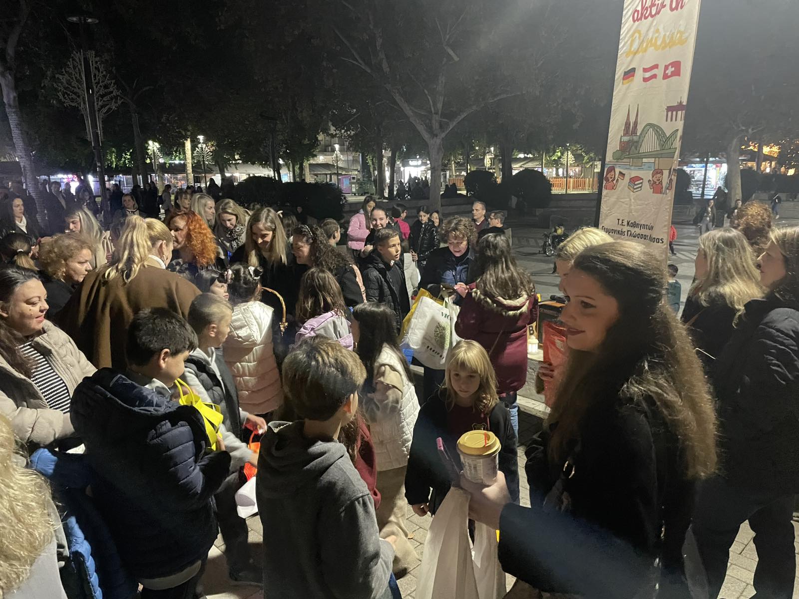 Πλήθος μικρών και μεγάλων συγκεντρώθηκε στην Πλατεία Ταχυδρομείου, όπου τα παιδιά δήλωσαν συμμετοχή στον διαγωνισμό αυτοσχέδιου φαναριού, παρουσιάζοντας μοναδικές χειροποίητες δημιουργίες – από ανακυκλώσιμα υλικά μέχρι περίτεχνα φωτισμένα σχέδια που έδειχναν φαντασία και μεράκι.
