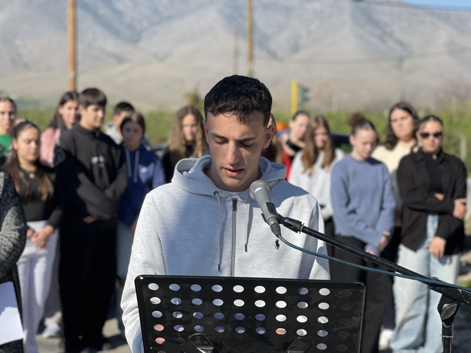 Ο Δήμαρχος στάθηκε ιδιαίτερα στο γεγονός ότι η πρωτοβουλία για την ονοματοδοσία προήλθε από τους ίδιους τους μαθητές, υπογραμμίζοντας πως τα «γιατί;» της κοινωνίας δεν μπορούν να μένουν αναπάντητα και πως η μνήμη των θυμάτων της τραγωδίας των Τεμπών οφείλει να γίνεται συλλογική