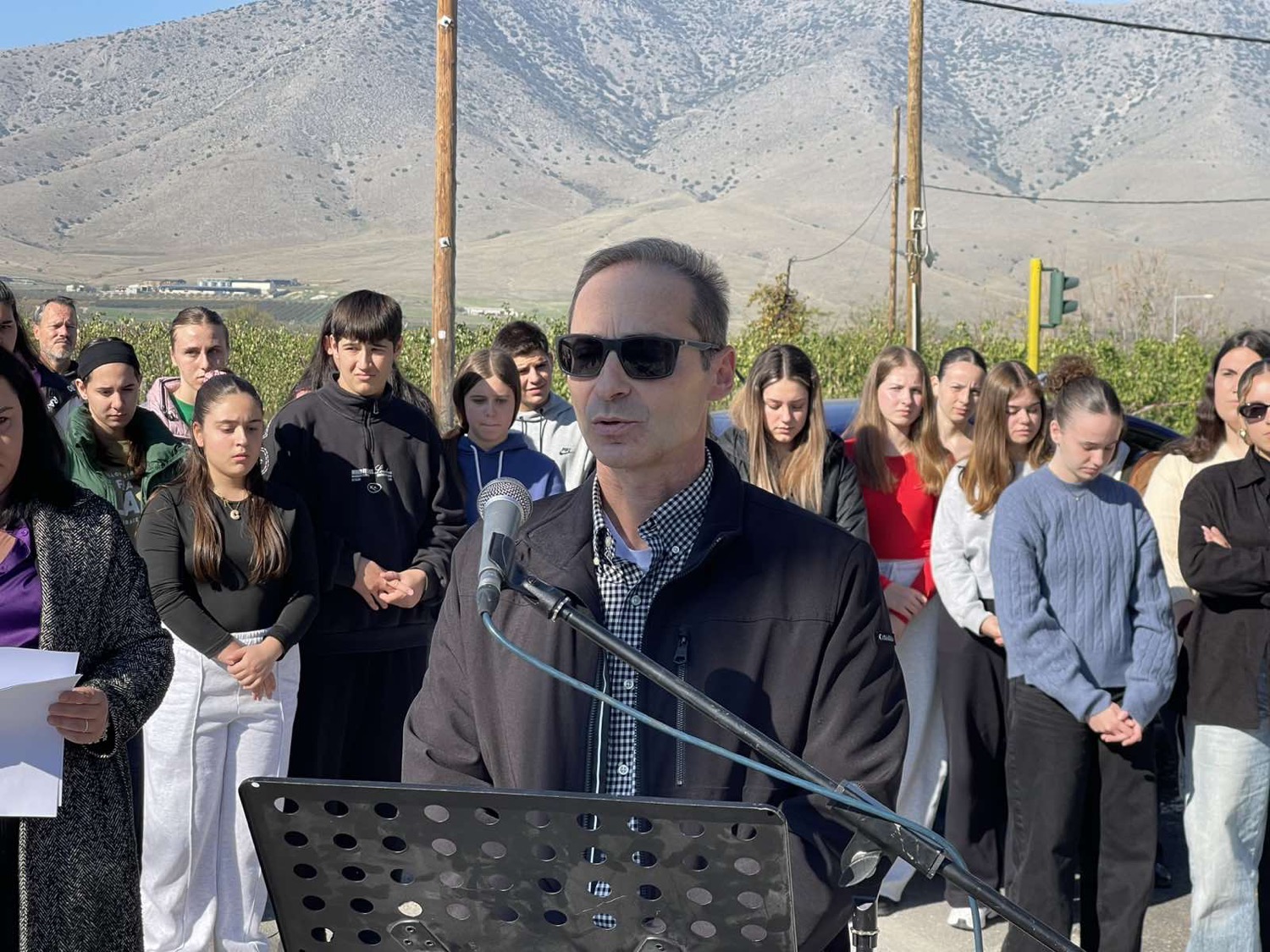 «Από αύριο, όταν τα παιδιά μας θα περνούν από αυτόν τον δρόμο, θα περνούν δίπλα από την ιστορία: την ιστορία της συντοπίτισσάς μας, νέας εργαζόμενης στο Γενικό Νοσοκομείο, που η ζωή της κόπηκε απότομα. Το έγκλημα στα Τέμπη δεν ήταν παρά η κορυφή του παγόβουνου· ένα μείγμα πολιτικών επιλογών που βάζει το κέρδος πάνω από τη ζωή, αφήνοντας τις υποδομές αδρανείς, το προσωπικό λιγοστό, τους μηχανισμούς ελέγχου ανεπαρκείς. Ήταν έγκλημα. Και όχι “η μοίρα”.»