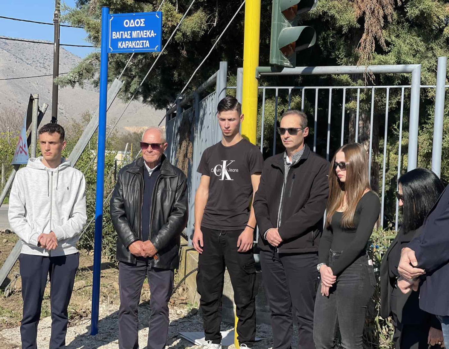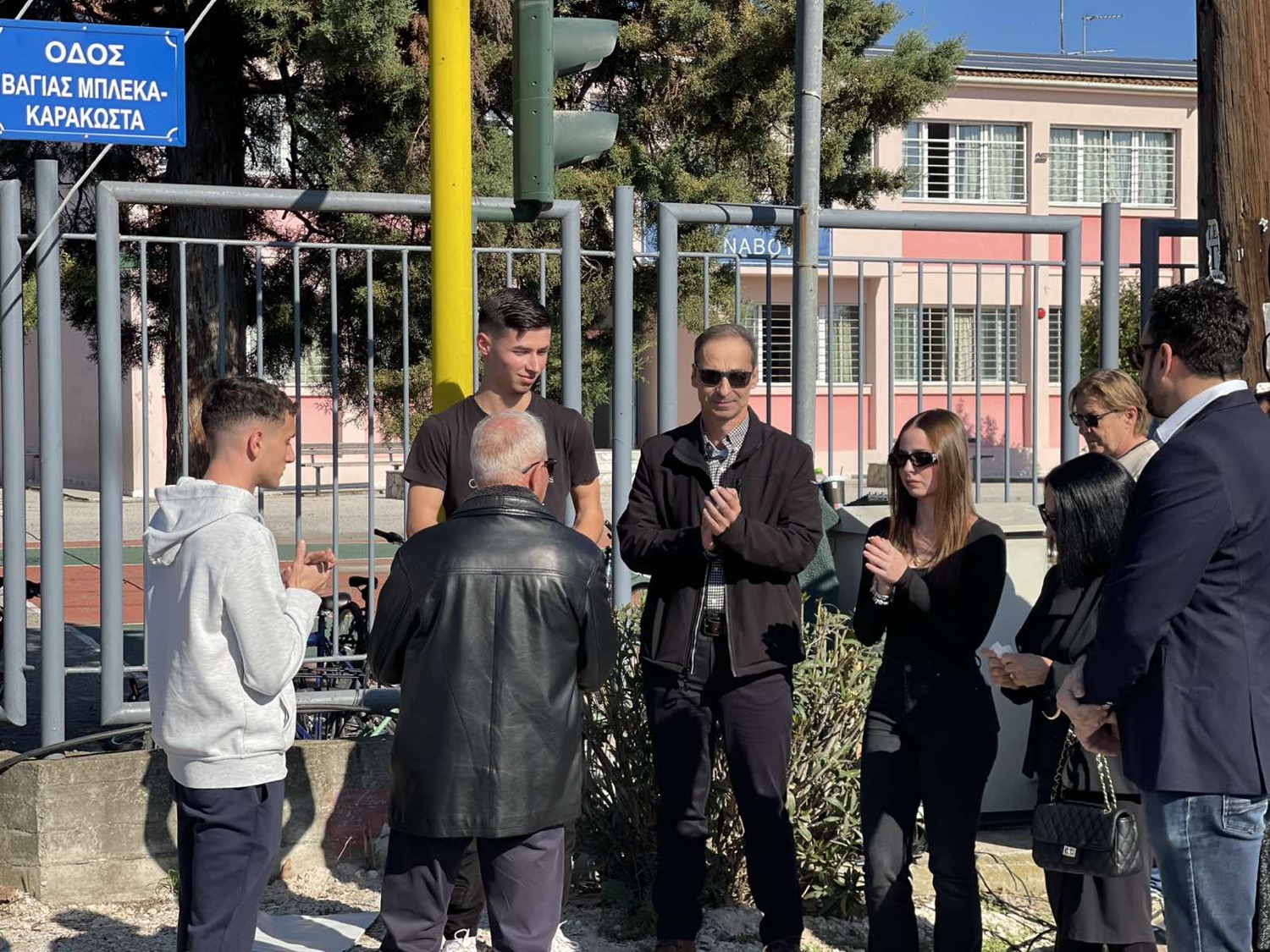 Χθες πραγματοποιήθηκε η ονοματοδοσία της οδού έξω από το Γενικό Λύκειο Τυρνάβου, σε μια λιτή και βαθιά συγκινητική τελετή, παρουσία των μαθητών, των εκπαιδευτικών, της οικογένειας της Βάγιας Μπλέκα Καρακώστα και εκπροσώπων της δημοτικής αρχής.