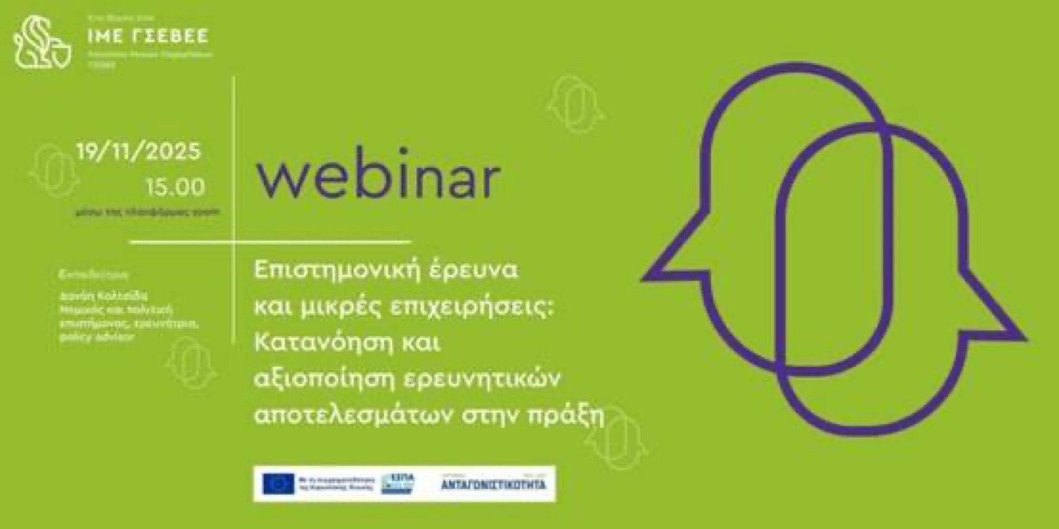 “Επιστημονική έρευνα και μικρές επιχειρήσεις”: Διαδικτυακή εκδήλωση από το ΙΜΕ – ΓΣΕΒΕΕ