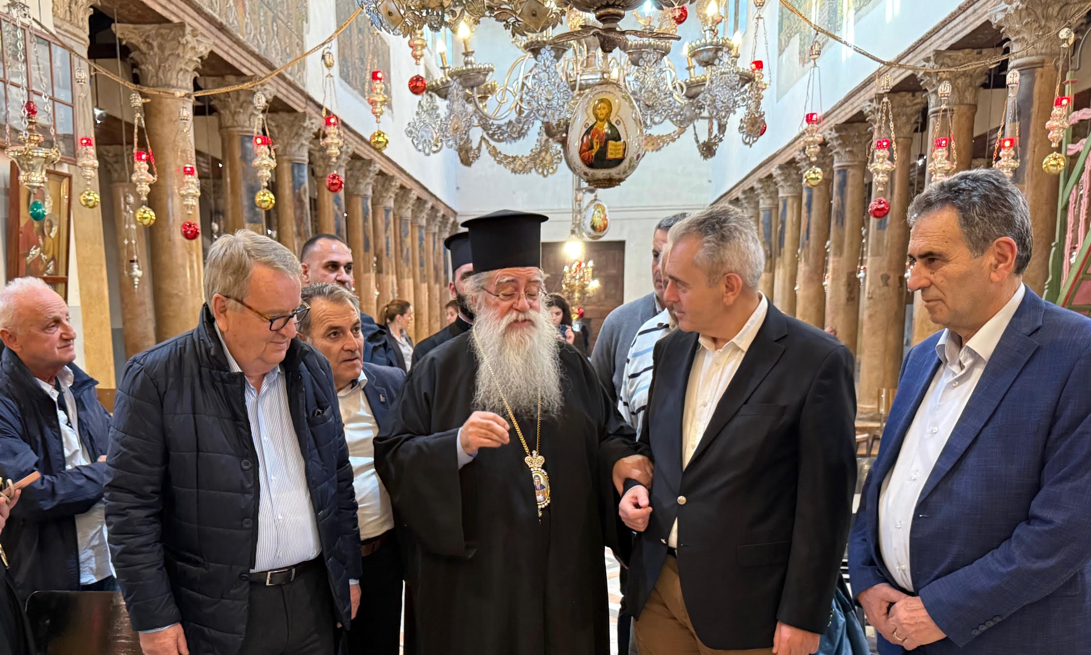 Την προηγουμένη, οι εκπρόσωποι της ΔΣΟ προσκύνησαν στον Ιερό Ναό της Γεννήσεως στην πόλη της Βηθλεέμ, όπου παρακολούθησαν τον Εσπερινό, που τέλεσε ο Μητροπολίτης Διοκαισαρείας και Πατριαρχικός Επίτροπος εν Βηθλεέμ κ. Βενέδικτος.