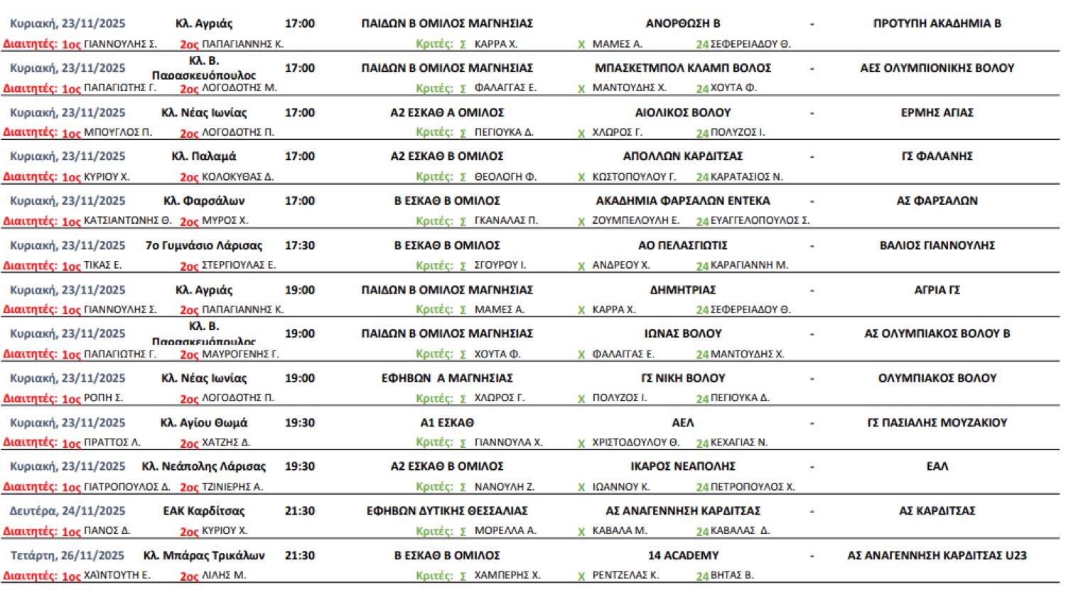 Η Ε.Σ.Κ.Α.Θ. ανακοίνωσε τα ονόματα των διαιτητών που θα διευθύνουν τους αγώνες των πρωταθλημάτων της.