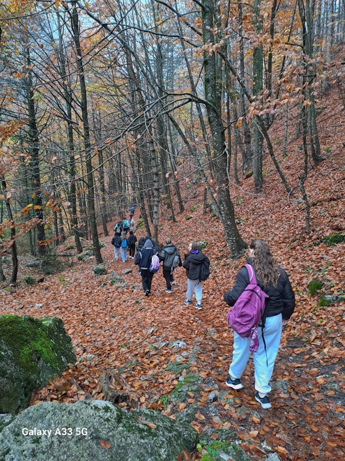 Η πεζοπορική διαδρομή ξεκίνησε από τη θέση «Πριόνια» και ακολούθησε το σηματοδοτημένο μονοπάτι προς το παλιό μοναστήρι του Αγ. Διονυσίου. Καθ’ όλη τη διάρκεια της πορείας, οι μαθητές παρατήρησαν τη χλωρίδα και την πανίδα της περιοχής και κατέγραψαν σχετικά στοιχεία. Οι συνοδοί καθηγητές παρείχαν επεξηγήσεις σχετικά με τη λειτουργία του δασικού οικοσυστήματος και τη σημασία της ισορροπίας μεταξύ φυσικών και ανθρώπινων παραγόντων.