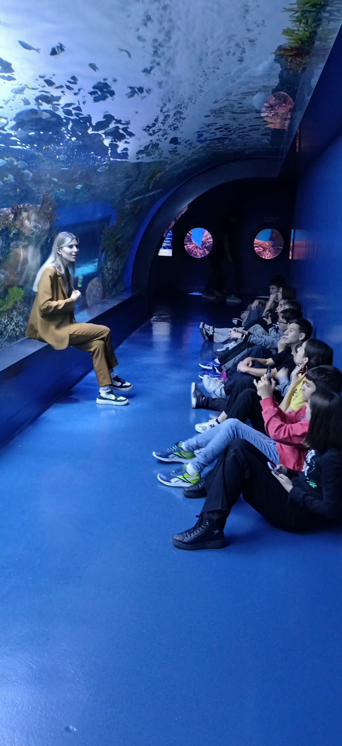 Οι μαθητές ξεναγήθηκαν από την υπεύθυνη του ενυδρείου, η οποία τους παρείχε πλούσιες πληροφορίες για τα είδη που φιλοξενούνταν σε κάθε δεξαμενή. Κατά τη διάρκεια της ξενάγησης είχαν την ευκαιρία να παρατηρήσουν καρχαρίες, σαλάχια, μέδουσες, ιππόκαμπους και πολλά ακόμη θαλάσσια πλάσματα. Η επίσκεψη ολοκληρώθηκε με χαμόγελα, ενθουσιασμό και πολλές φωτογραφίες, αφήνοντας στους μαθητές αξέχαστες εικόνες και εμπειρίες από τον μαγικό κόσμο του βυθού. Η δράση αυτή ενίσχυσε το ενδιαφέρον τους για τις Φυσικές Επιστήμες και συνέδεσε τη σχολική γνώση με αυθεντικά βιώματα από τον φυσικό κόσμο.