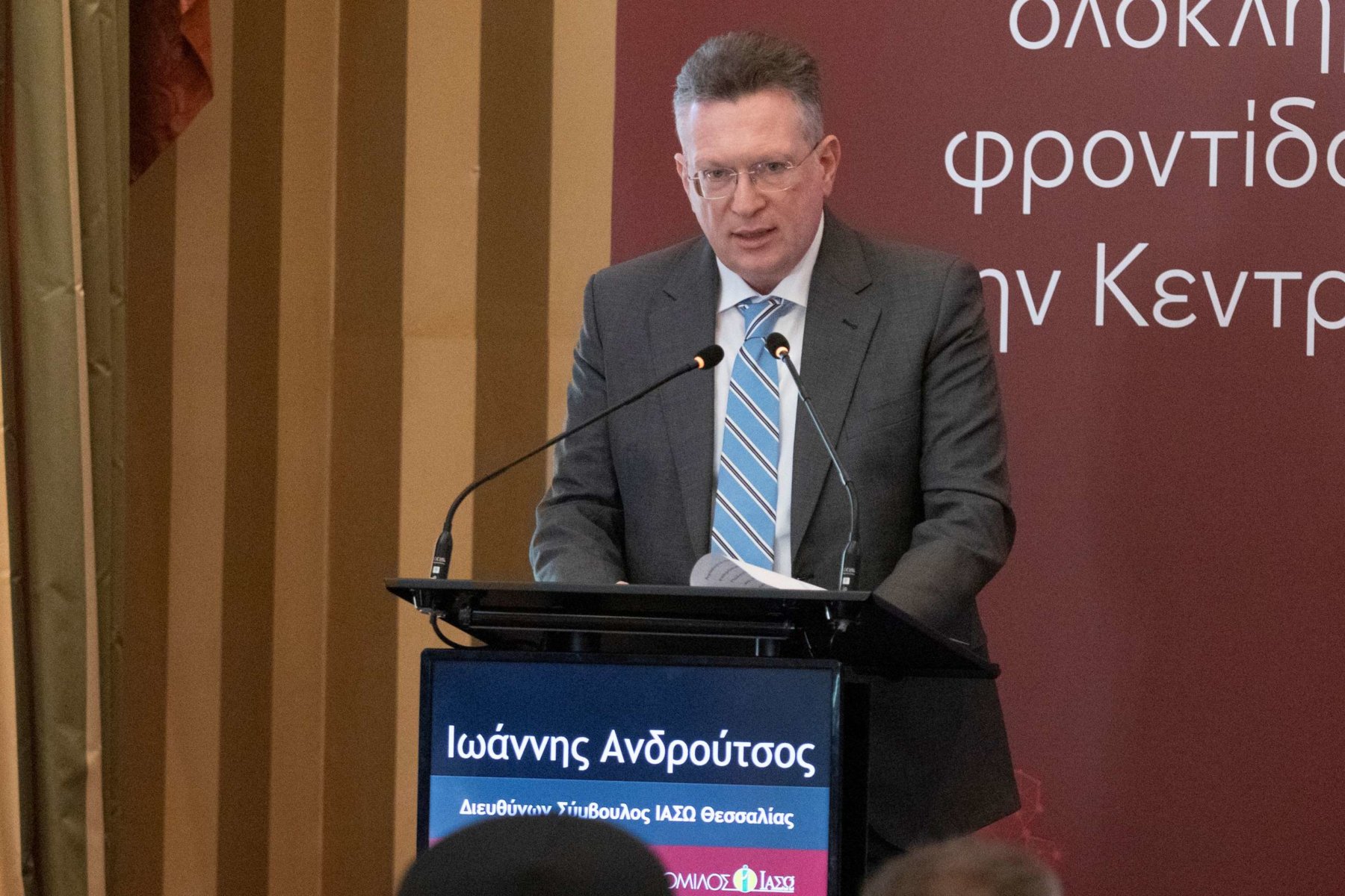 Την εκδήλωση χαιρέτησαν ο εκπρόσωπος του Σεβασμιωτάτου Μητροπολίτη Λαρίσης και Τυρνάβου Αρχιμανδρίτης Σέργιος Παραλίκας, η Γραμματέας Αποκεντρωμένης Διοίκησης Θεσσαλίας – Στερεάς Ελλάδας Ρένα Καραλαριώτου, ο Δήμαρχος Λαρισαίων Αθανάσιος Μαμάκος, ο εκπρόσωπος του Ιατρικού Συλλόγου Λάρισας Βασίλειος Πινακάς, καθώς και ο Διευθύνων Σύμβουλος ΙΑΣΩ Θεσσαλίας Ιωάννης Ανδρούτσος και ο Διευθυντής Ιατρικής Υπηρεσίας ΙΑΣΩ Θεσσαλίας Απόστολος Κομνός. Την εκδήλωση τίμησε με την παρουσία του ο Βουλευτής Χρήστος Καπετάνος, ενώ χαιρετισμούς έστειλαν ο Υφυπουργός Αγροτικής Ανάπτυξης και τροφίμων Χρήστος Κέλλας και οι Βουλευτές Μάξιμος Χαρακόπουλος, Ευαγγελία Λιακούλη και Βασίλειος Κόκκαλης.