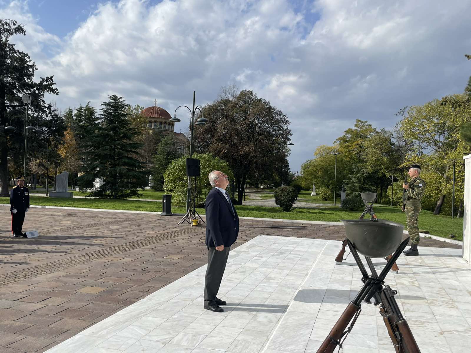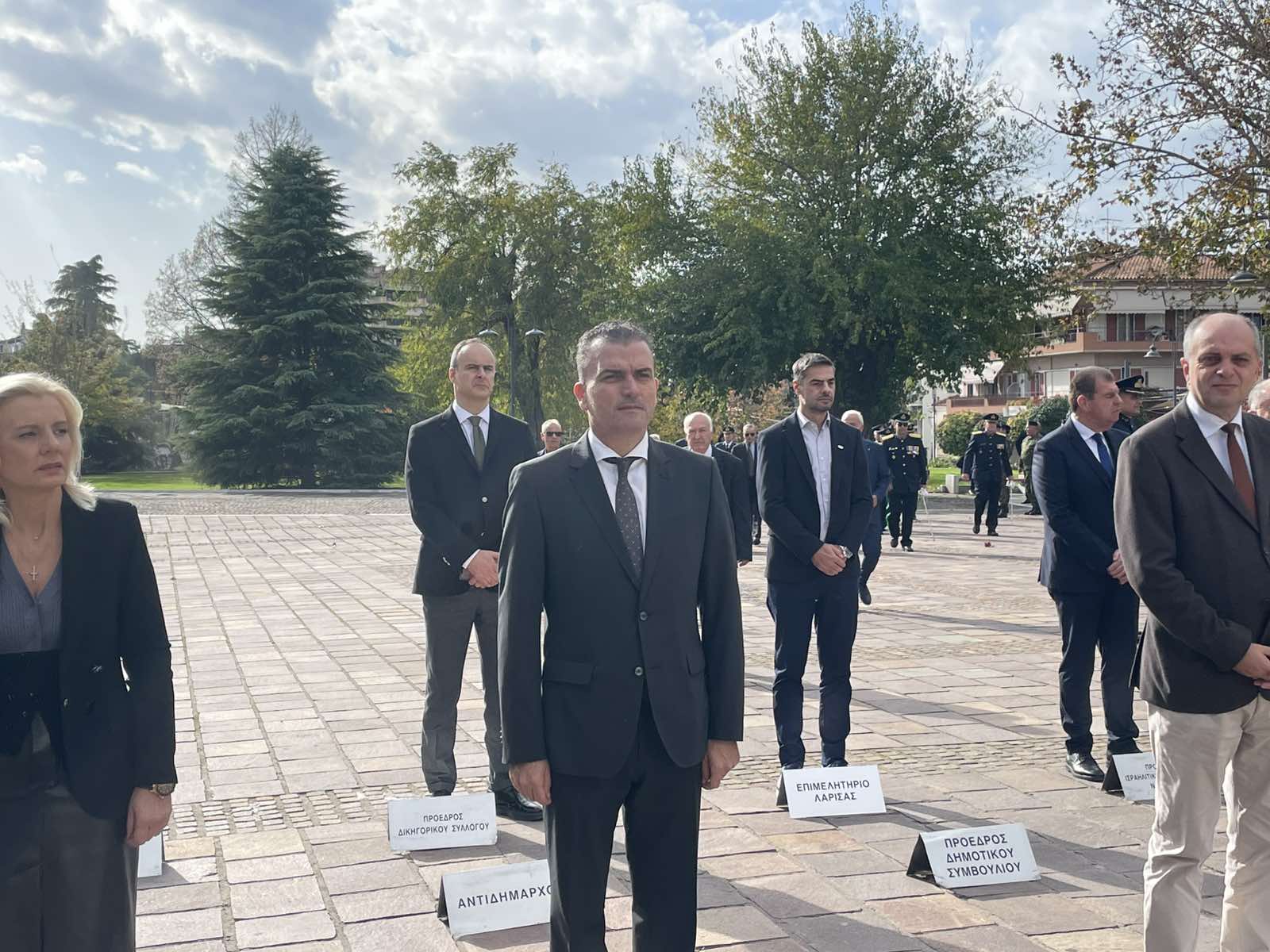 Βάσει προγράμματος το πρωί έγινε επίσημη έπαρση – υποστολή σημαίας στο Ηρώο της Λάρισας, με συμμετοχή της μουσικής 1ης Στρατιάς και τιμητικού στρατιωτικού τμήματος.