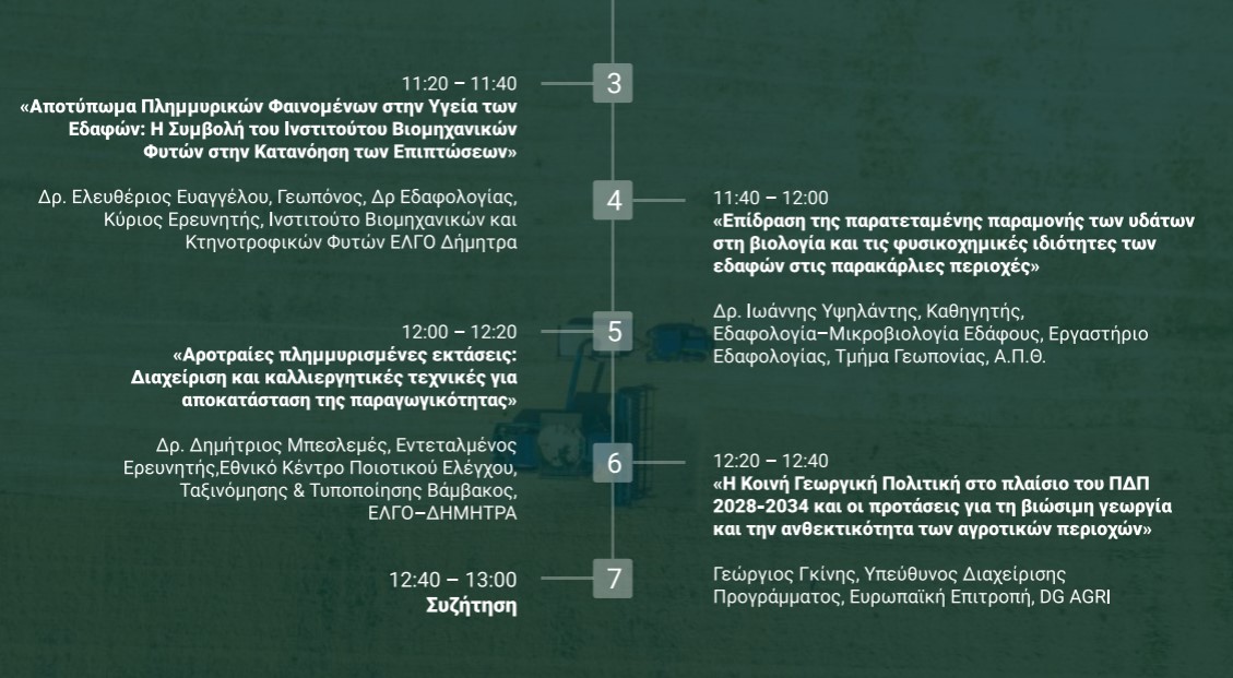 Με τη συμμετοχή ειδικών επιστημόνων και φορέων, θα αναδειχθούν κρίσιμες πτυχές που αφορούν την υγεία των εδάφων, τις καλλιεργητικές πρακτικές, καθώς και τον ρόλο της Νέας Κοινής Γεωργικής Πολιτικής.