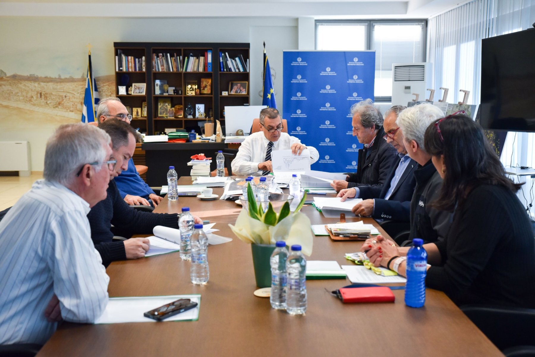 Ευρεία σύσκεψη συγκάλεσε, σήμερα, ο Περιφερειάρχης Δημήτρης Κουρέτας με αφορμή την έξαρση της ατμοσφαιρικής ρύπανσης το τελευταίο διάστημα στις πόλεις της Θεσσαλίας. Στη σύσκεψη συμμετείχαν ο Θεματικός Αντιπεριφερειάρχης Περιβάλλοντος Φώτης Λαμπρινίδης, ο Περιφερειακός Συντονιστής Πολιτικής Προστασίας Δημήτριος Μπίκος, η Προϊσταμένη της Αυτοτελούς Διεύθυνσης Πολιτικής Προστασίας Ελεάννα Πορίχη, ο Σύμβουλος του Περιφερειάρχη σε θέματα Περιβάλλοντος Ζήσης Αργυρόπουλος και ο Συνεργάτης του Περιφερειάρχη Βασίλης Έξαρχος. Παρόντες ήταν επίσης ο Πρόεδρος του Ιατρικού Συλλόγου Λάρισας Κωνσταντίνος Γιαννακόπουλος , ο Πρόεδρος του Εμπορικού Συλλόγου Βόλου και Β Αντιπρόεδρος του Επιμελητηρίου Μαγνησίας Απόστολος Οντόπουλος καθώς και ο Γενικός Γραμματέας του Επιμελητηρίου Λάρισας Νικόλαος Καγκελάρης.