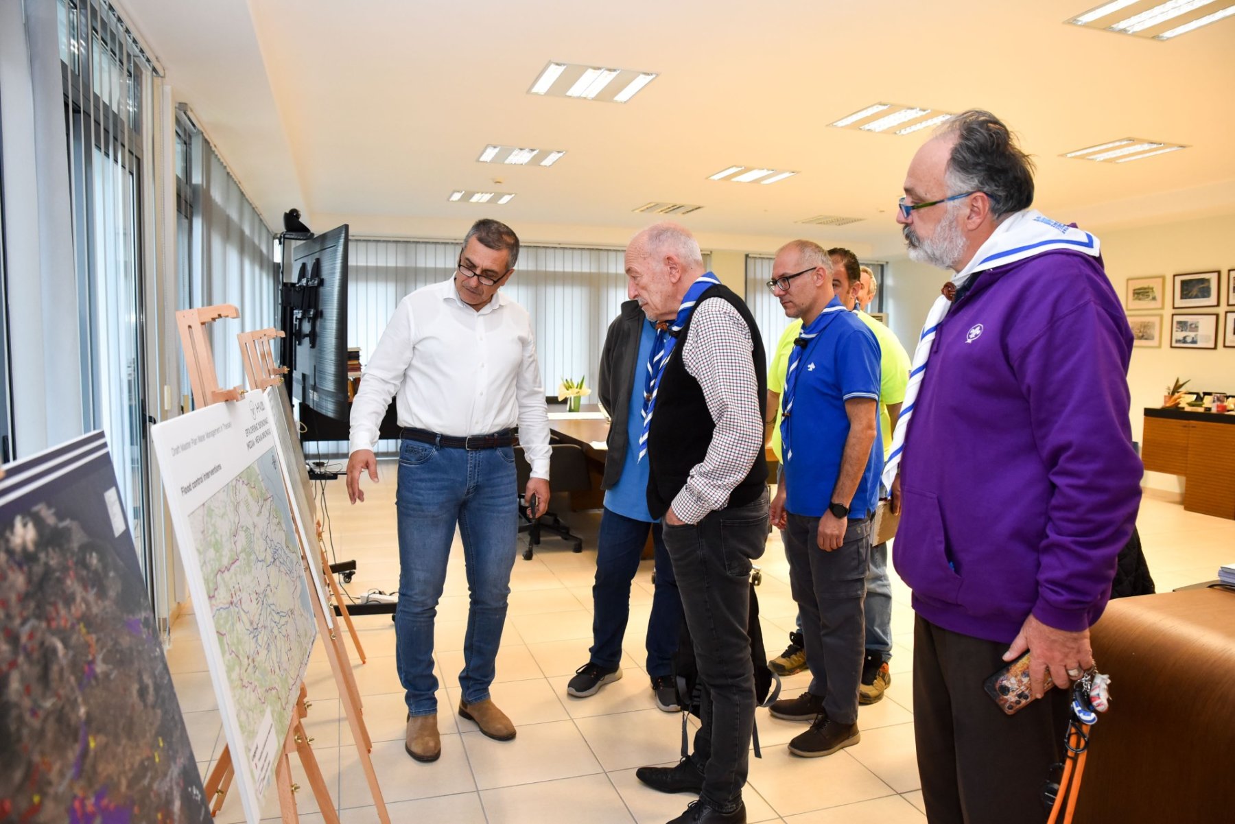 Το κλιμάκιο των Προσκόπων που συνόδευε τον κ. Αρνιακό στην Περιφέρεια αποτελούνταν από τον Περιφερειακό Έφορο Προσκόπων Κεντρικής και Δυτικής Θεσσαλίας Αντώνη Ευαγγέλου, τον πρόεδρο της επιτροπής κοινωνικής συμπαράστασης Μωυσή Μανουάχ, από τον δικηγόρο- πρόσκοπο Δημήτρη Τόλιο και τον υπεύθυνο Πολιτικής Προστασίας Προσκόπων ΚΔ Θεσσαλίας Αλμπέρτο Μπέγα.