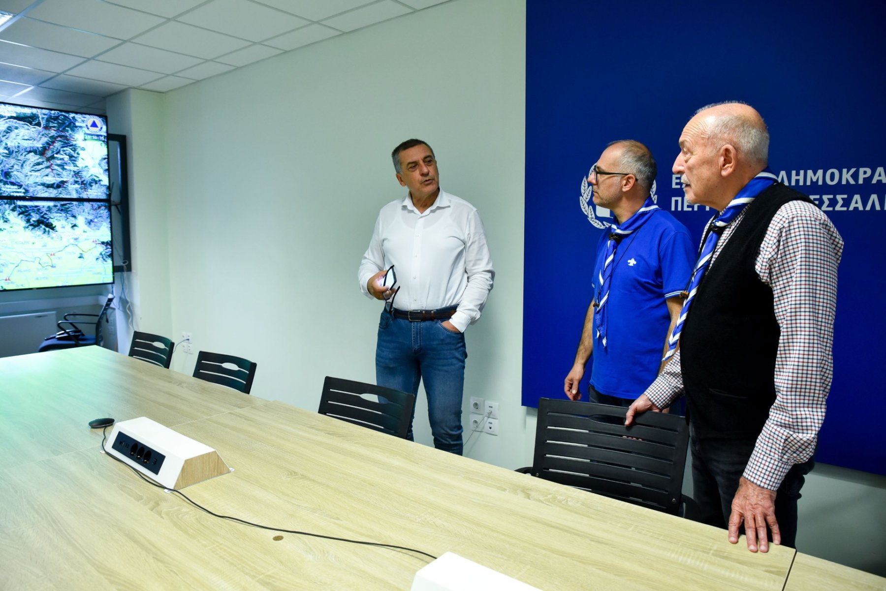 Ο κ. Αρνιακός συνεχάρη τον Δημήτρη Κουρέτα για την πρότυπη λειτουργία του Κέντρου, δήλωσε εντυπωσιασμένος από τον σύγχρονο μηχανισμό και την αξιοποίηση της τεχνολογίας και έθεσε τον εαυτό του, αλλά και το σώμα των Προσκόπων στη διάθεση της Περιφέρειας.