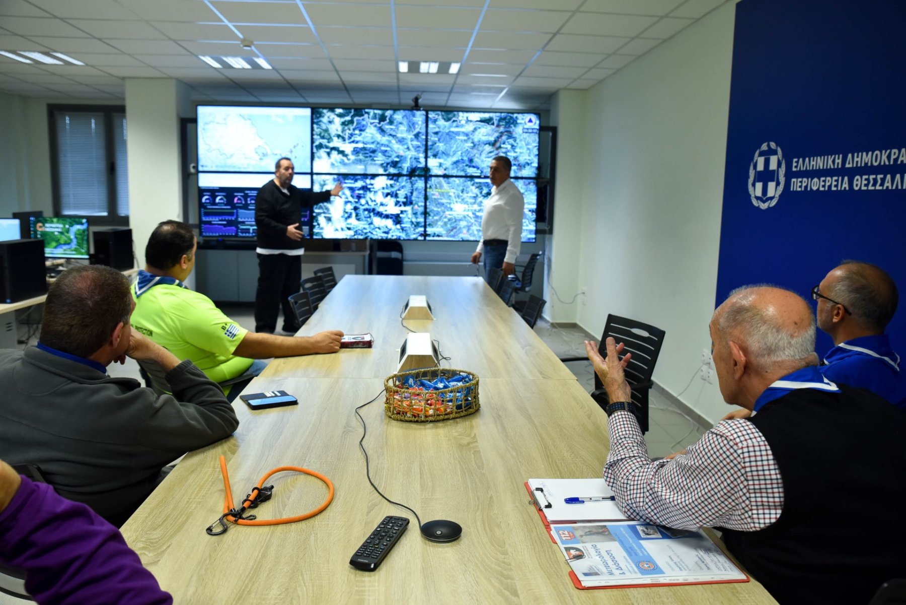 Ακολούθησε ξενάγηση του κ. Αρνιακού στο Περιφερειακό Κέντρο Επιχειρήσεων του Πυροσβεστικού Σώματος, το γειτνιάζει με το Κέντρο Πολιτικής Προστασίας της Περιφέρειας Θεσσαλίας, αλλά και αναλυτική ενημέρωση του -μέσω χαρτών- για τον αντιπλημμυρικό σχεδιασμό της Περιφερειακής Αρχής.