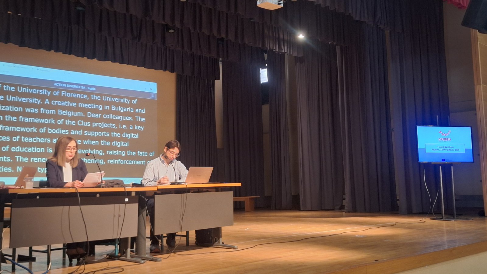 Σήμερα Σάββατο 22 Νοεμβρίου, στο 4ο Δημοτικό Σχολείο Λάρισας, πραγματοποιείται το Διεθνές Συνέδριο «D-PAIDEIA», που διοργανώνεται από τη Διεύθυνση Πρωτοβάθμιας Εκπαίδευσης Λάρισας σε συνεργασία με τον οργανισμό Action Synergy, συντονιστή του Ευρωπαϊκού Προγράμματος Erasmus+ D-PAIDEIA.