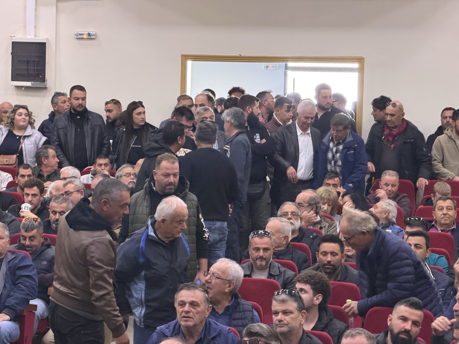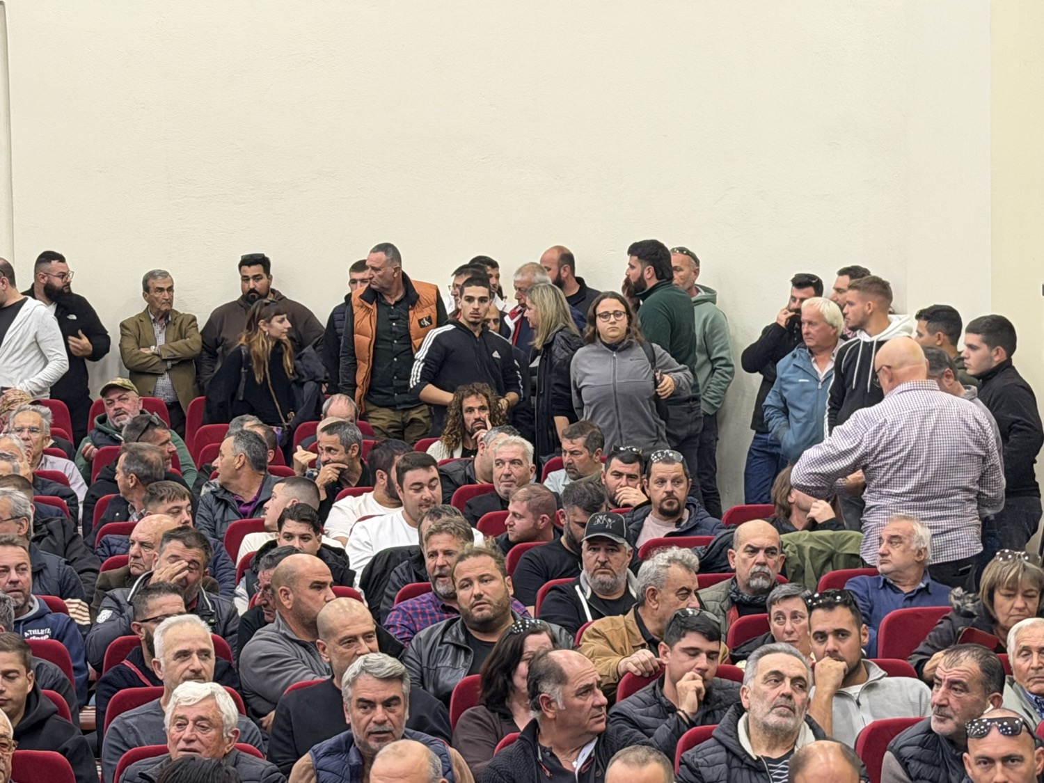Η προσέλευση ήταν τόσο μεγάλη, που πλήθος αγροτών βρέθηκε όρθιο μέσα στην αίθουσα, ενώ πολλοί ακόμη έμειναν εκτός κτηρίου, ακούγοντας τη σύσκεψη από την μεγαφωνική που είχε στηθεί.